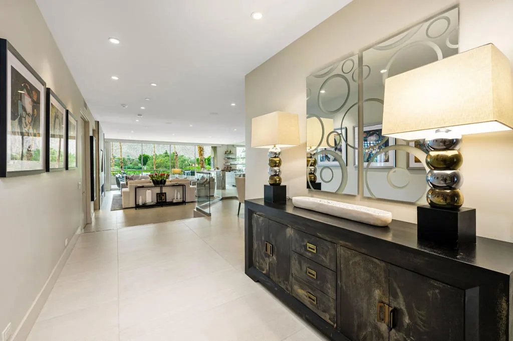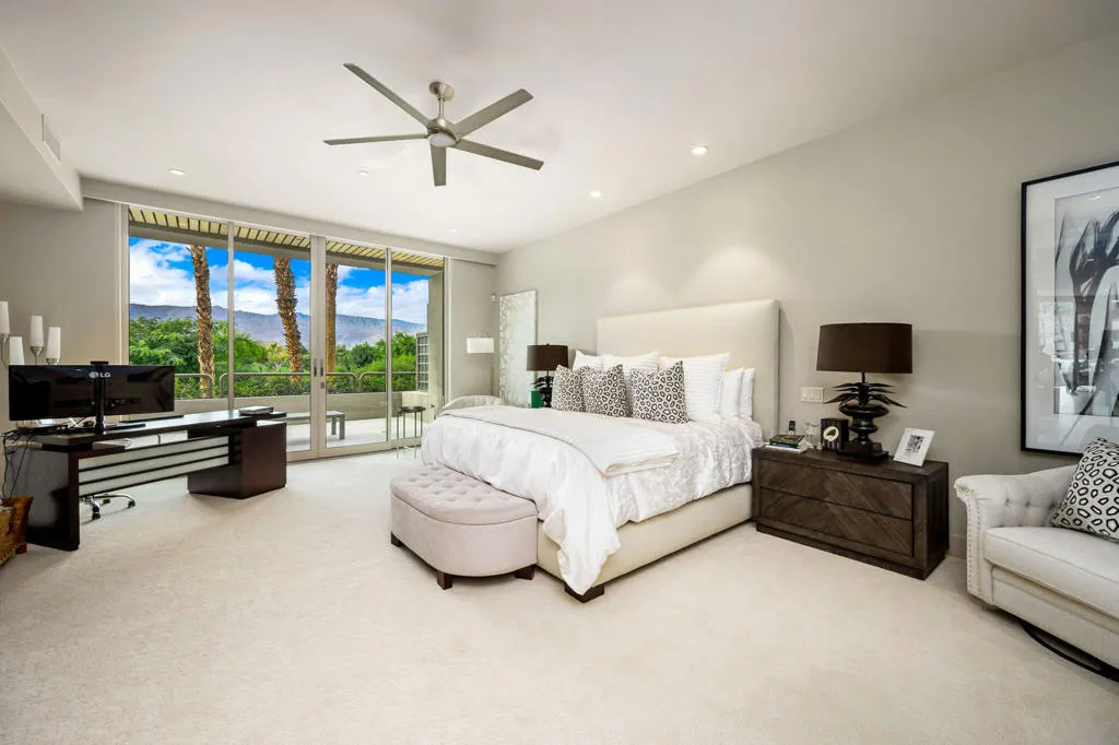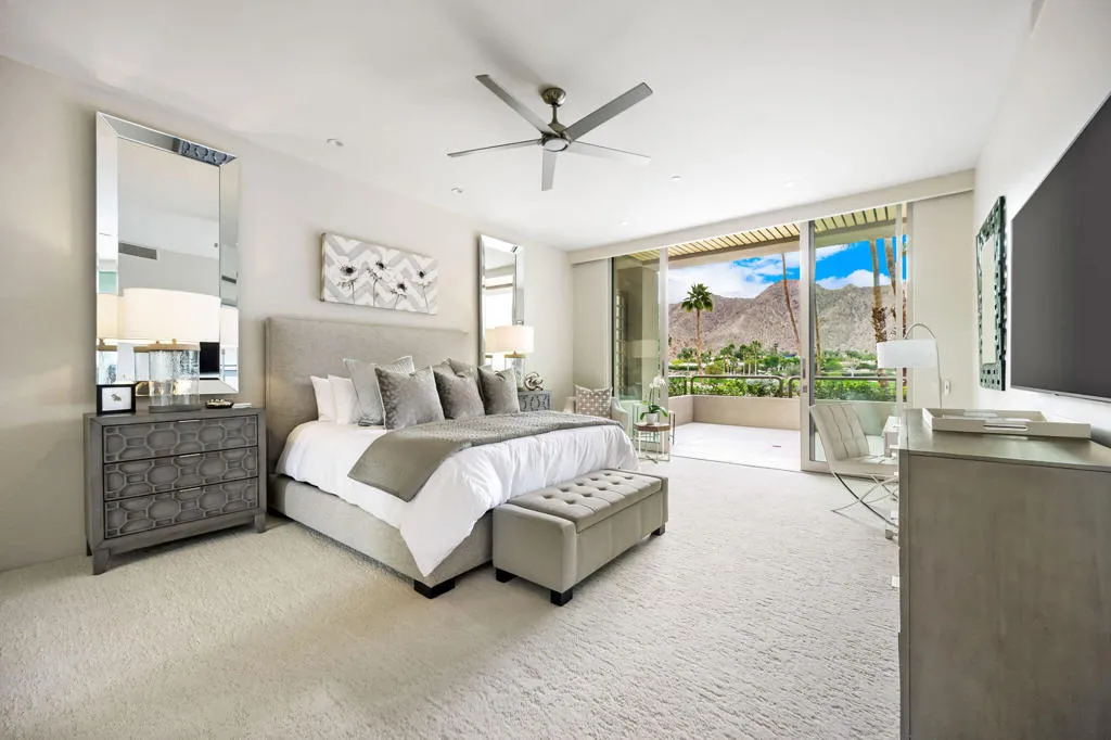 Welcome to The Terraces. The Terraces represent one of the housing options available to those discriminating buyers seeking membership in The Vintage Club which requires each member to own real estate within the community. The Terraces are the only product line that offers on-staff dedicated Concierge year-round under its homeowner association umbrella creating a lifestyle enhanced by service. There is a total of 53 Terraces within two buildings, each building offering 3 housing levels plus dedicated parking for two cars and a double tandem golf cart or single cart/storage area.This stunning 3-bedroom Terrace has come to the marketplace and is located along the 2nd floor promenade directly opposite the building's center-elevator. Its spacious 4,174 square foot floorplan lives like a home once you step into its foyer. Beautifully remodeled and decorator appointed to offer contemporary styling, this Terrace is listed furnished per the Seller's approved inventory beyond their exclusions of artwork, artifacts, collectibles, and personal items. This Terrace includes a primary ensuite with expansive bath and walk-in closet, plus two additional guest ensuites, each with upgraded bath. There is a formal powder room and a dedicated laundry room. Located centrally in the home is the expansive gourmet style kitchen with island and an office alcove. The dining room is located on the entry level and steps down to the living room and the cozy seating of the television niche. The living room is complemented by a fireplace, grandiose custom designed bar with bar-height seating and stackable glass sliding doors that not only lead to a private sunbathed balcony but enjoys panoramic views of the fairways and mountains beyond.
