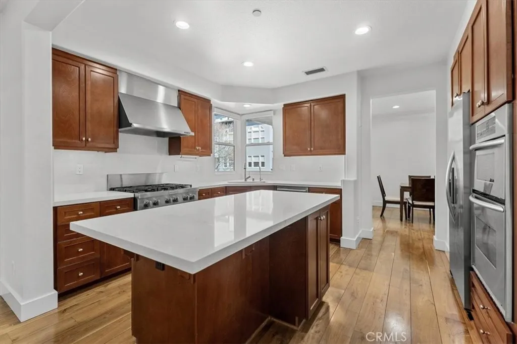 An exceptional opportunity to own one of Playa Vista’s most coveted residences, offering over 3,200 square feet of light-filled living space, three spacious en-suite bedrooms plus a bonus room and a large family room, with direct private access to its own attached two-car garage, all complemented by abundant storage throughout. This end-unit townhome lives like a single-family home, with no one above or below, surrounded by garden views and exceptional privacy. A dramatic living room with soaring ceilings and a fireplace sets the tone from the moment you enter through the gated front patio. The formal dining room opens to a generous balcony, creating seamless indoor-outdoor entertaining, while the family room flows effortlessly into a chef’s kitchen appointed with quartz countertops, top-of-the-line stainless steel appliances, a walk-in pantry, and an oversized center island designed for gathering. A whole-house water softener adds everyday comfort. Moments from Playa Vista’s premier amenities—including resort-style pools, state-of-the-art fitness centers, parks, Whole Foods, dining, shopping, and entertainment—this is elevated Westside living at its finest.