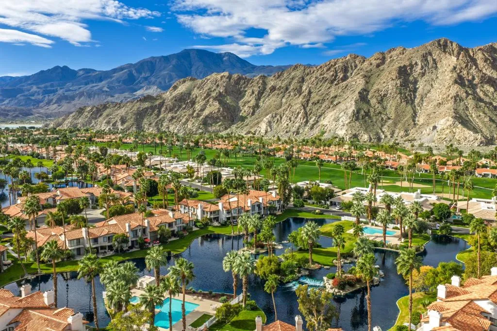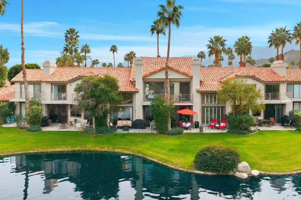 Located behind the gates of PGA West Country Club in prestigious South La Quinta, this lakefront residence within the Palmer Private community captures panoramic Santa Rosa Mountain views and elevated desert living in one of La Quinta's most established golf communities.Positioned along a private interior lake, the home offers uninterrupted water and mountain vistas from its primary living spaces. Expansive sliding glass doors and soaring ceilings enhance the open concept design, creating seamless indoor outdoor flow and filling the interiors with natural light. With 1,621 square feet, the floor plan balances comfort, scale, and functionality for both everyday living and refined entertaining.The great room connects effortlessly to the kitchen and dining area, while the primary suite enjoys tranquil lake views and separation from the guest accommodations. Two additional bedrooms provide flexibility for visitors, a home office, or seasonal ownership.Offered turnkey furnished, this PGA West lakefront home presents an exceptional opportunity for full time residence, luxury seasonal retreat, or investment property in South La Quinta. Residents enjoy access to championship golf, tennis, pickleball, dining, and hiking throughout La Quinta and the Coachella Valley.A premier lakefront offering in Palmer Private at PGA West.