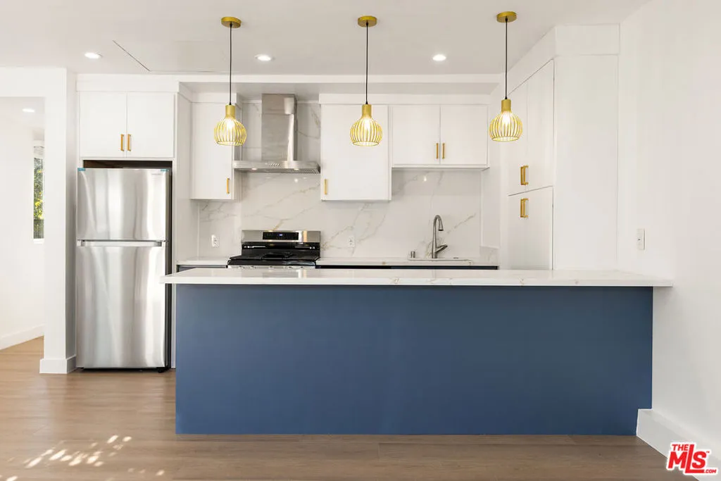 Stylish two-story townhome ADU designed with modern comfort in mind. The home features luxury plank flooring, recessed lighting, skylights, and double-pane windows that fill the space with natural light. The kitchen is a centerpiece of style and functionality, boasting Quartz countertops, a breakfast bar, stainless steel appliances, and elegant lighting fixtures. The primary suite offers a spacious customized closet, a private balcony, and a spa-inspired bathroom with thoughtful design details. Additional highlights include in-unit laundry & central air conditioning and heating controlled by a Nest thermostat. Step outside to a serene outdoor space complete with fruit trees, ideal for unwinding in a peaceful setting. Centrally located near the vibrant dining and shopping scene in Sawtelle Japantown, this home also offers quick access to the 405 and 10 freeways, as well as Westwood, Culver City, and Santa Monica.
