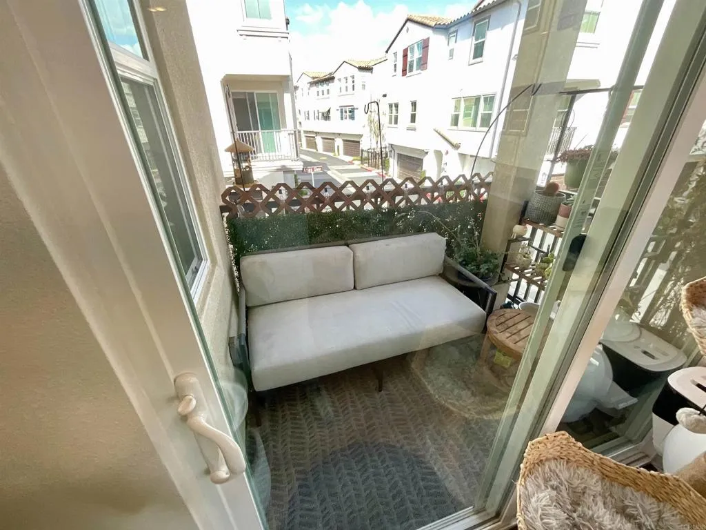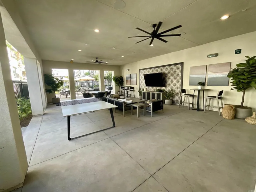 Beautifully upgraded and perfectly located end unit townhome with outdoor covered balcony and 2 car attached garage. Paid off solar! Very upgraded throughout including luxury vinyl planking, all newly painted interior, upgraded carpet, all electric window treatment shades in great room with picture windows that can be programmed to automatically raise and close, black out designer window treatment shades in the 2 primary suites, indoor laundry. Upgraded smart Samsung refrigerator with family hub and upgraded LG washer and dryer, both included. Larger primary with dual sinks and walk in closet. Large finished 2 car garage with smart electric car hookup, tankless water heater & shelving included. kitchen with big 3 seater breakfast bar, best stainless appliances, quartz counters, designer hardware, upgraded backsplash. All lights, the whole house fan, the thermostat and the window treatments work with an app. HOA includes pool, spa, playground, tot lot, dog park, green space areas, fire pit, lounge area with TV &ping pong table, outdoor grills, a lot of outdoor dining tables & gym being installed. All furnishings negotiable.