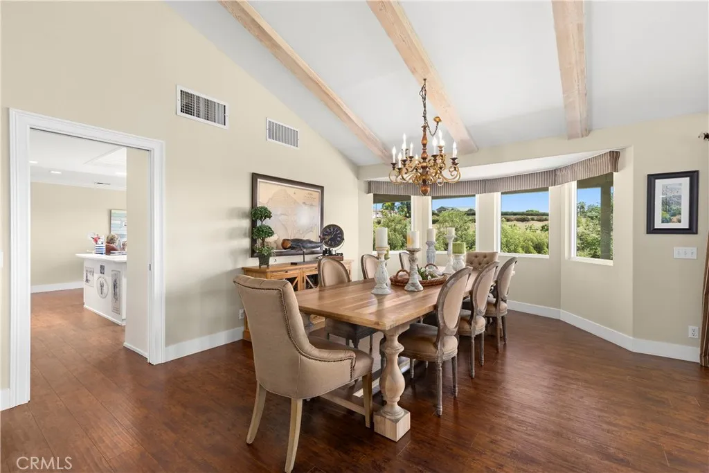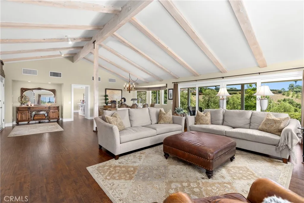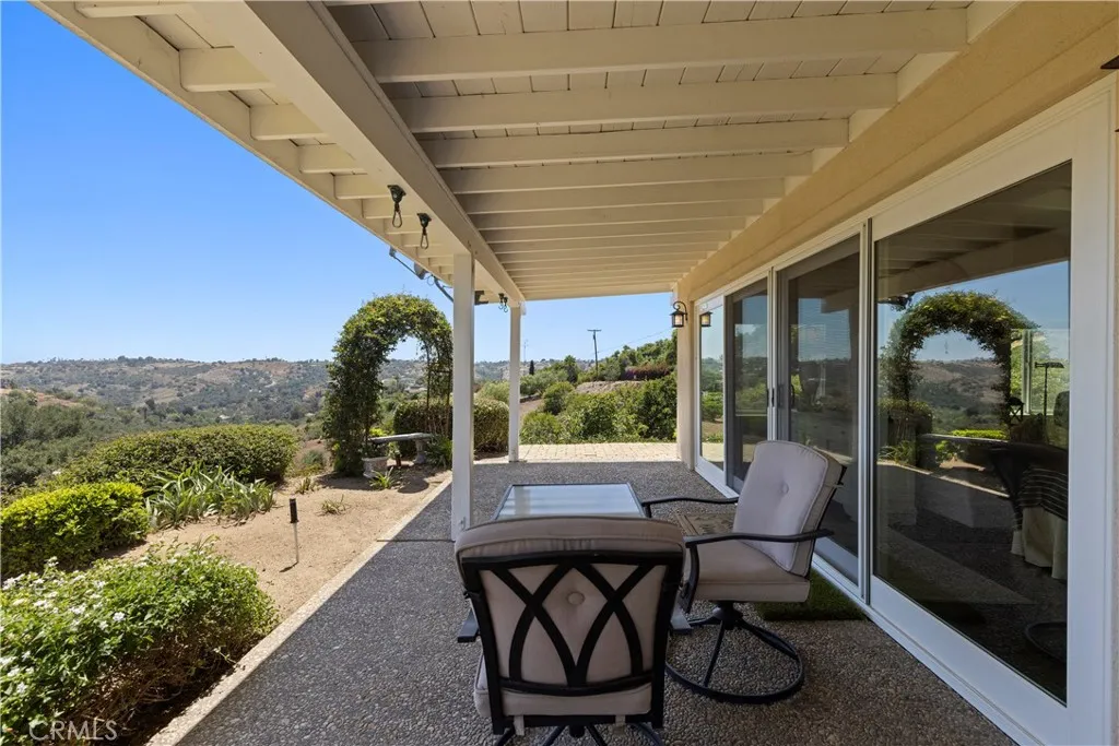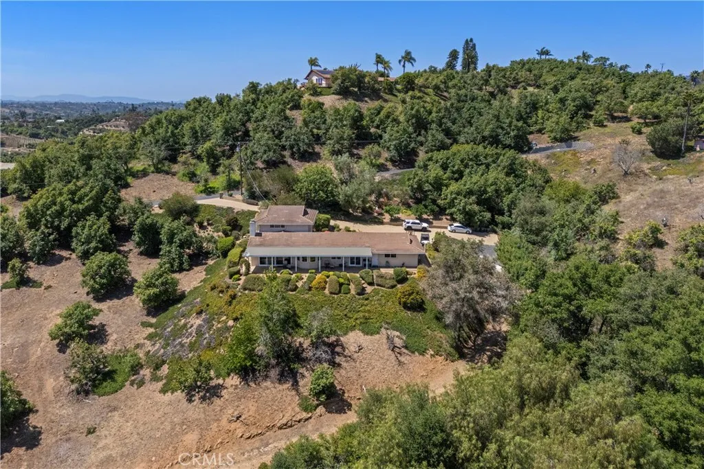 Welcome to this well-maintained 3-bedroom, 2.5-bath 2,624 sq ft home in the hills of Fallbrook. Located on a quiet private road, the 2.07 acre property offers panoramic views, a producing avocado grove, and convenient access to I-15, Temecula, and the coast. The landscaped grounds with a charming wrap around porch show pride of ownership and provide space for ATVs, gardening, or outdoor entertaining. Inside, vaulted wood-beam ceilings, a wood-burning fireplace, and dual-pane windows create a bright, open living space and formal dining room. The updated kitchen offers modern finishes, ample counter space, breakfast nook and a walk-in pantry. The 2 bedrooms downstairs double as an office or guest room. Upstairs you will find the private primary suite with an en-suite bath, custom built-in closets, and direct access to a Trex deck overlooking the groves. Additional features include a large two-car garage with built-in cabinetry, dedicated laundry room, and generous storage throughout. Property highlights: • 2.07 acres with a 75-tree producing avocado grove, irrigation set up for up to 150 trees • 20 minutes to Old Town Temecula, 30 minutes to the beach • Minutes to I-15 and 3 minutes to Monserate Winery • Usable land for recreation or entertaining • Updated concrete tile roof and HVAC • Space to add an ADU for rental or multigenerational living • Well-maintained septic system • New paver driveway Ideal for those seeking space, privacy, and income potential in a central Fallbrook location. Schedule a showing today!