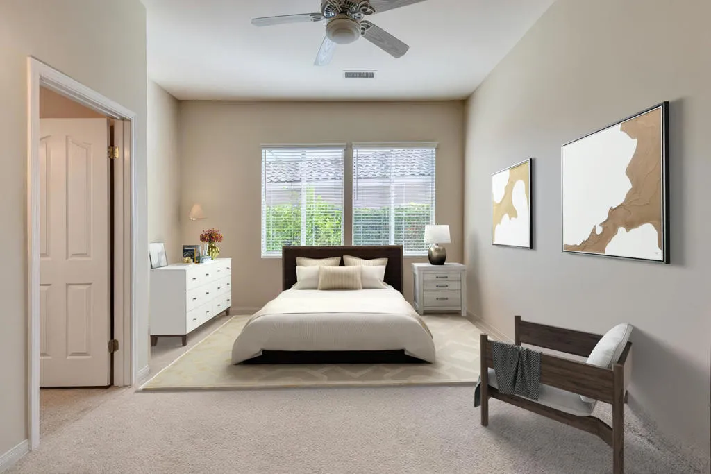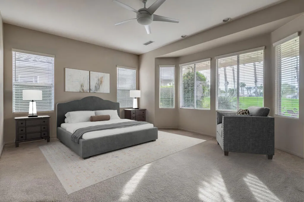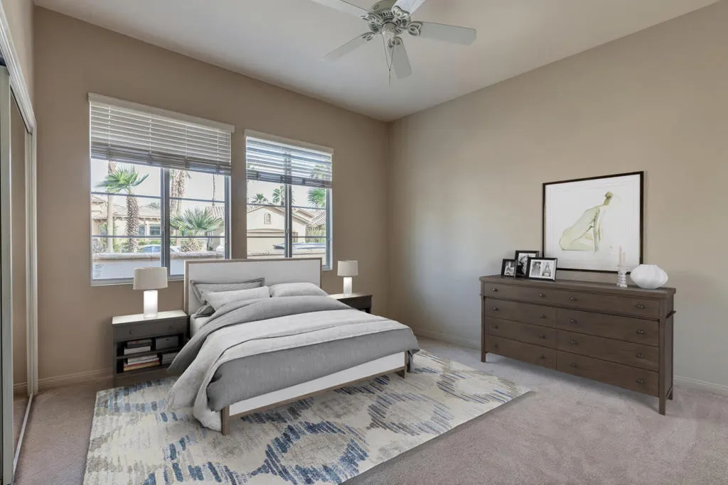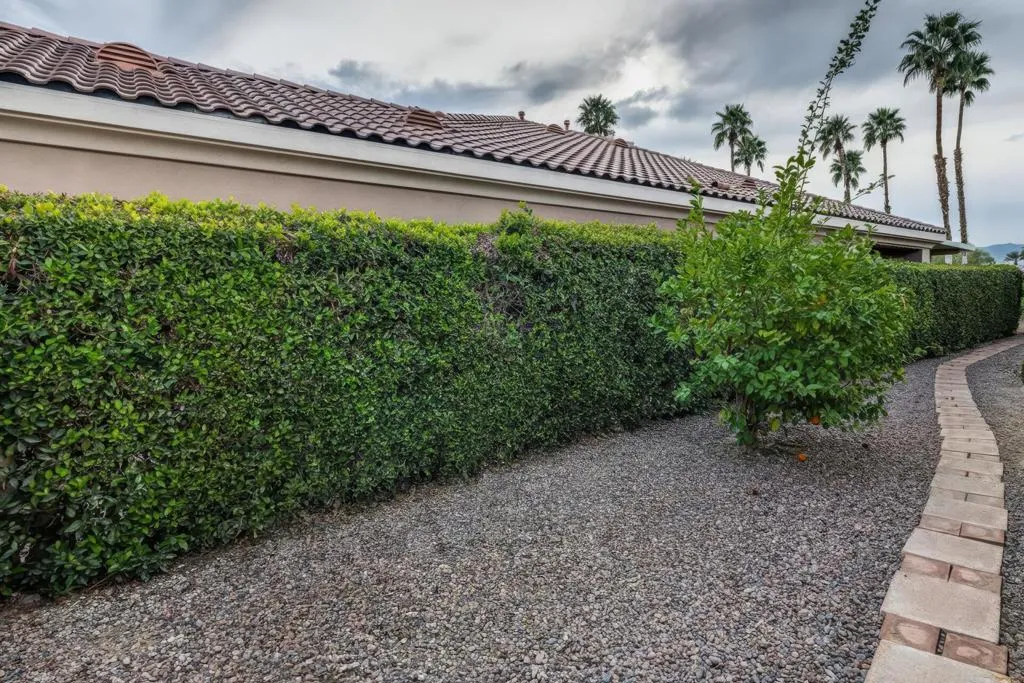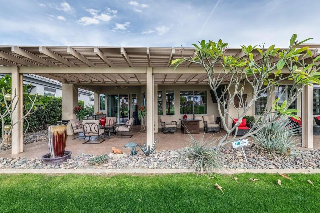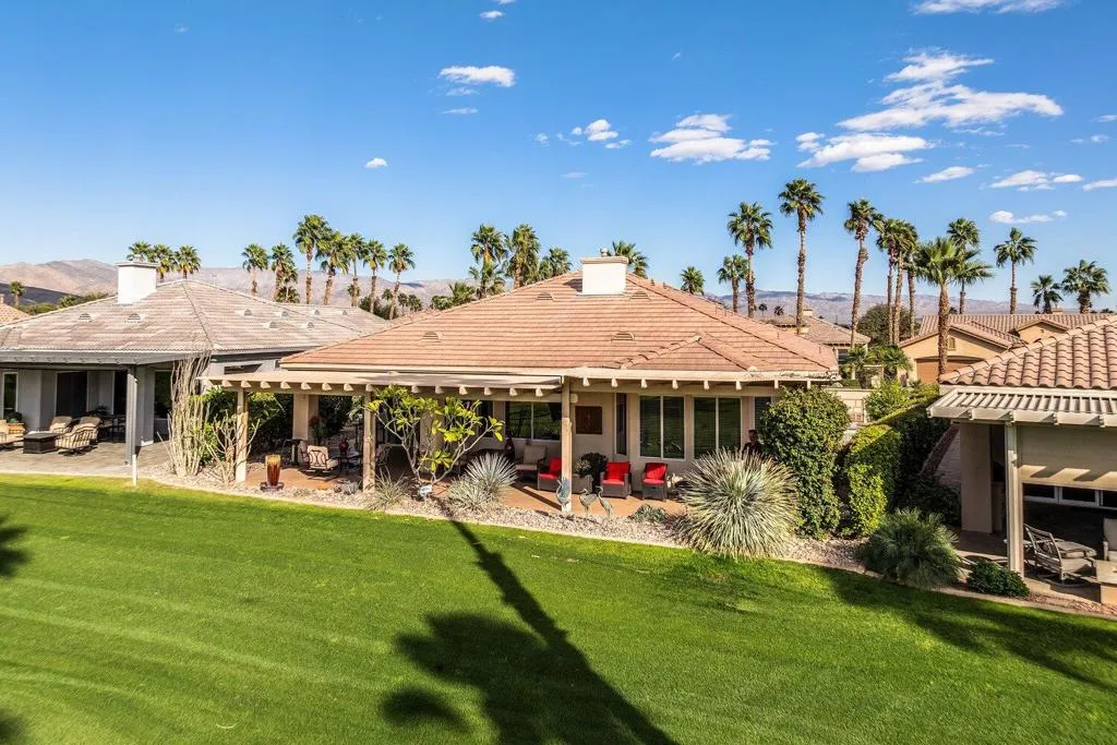 Step into one of the most sought-after homes in Heritage Palms Country Club. Situated on the 6th Green with panoramic views this 2,504 sq. ft. Westerwood Model is designed to elevate both everyday living and unforgettable entertaining. From the moment you enter, the home draws you in with its open-concept design and effortless flow. The kitchen is functional, and ready to impress. Granite countertops, a charming farmhouse sink, abundant cabinetry with convenient pull-outs, and expansive prep space make it equally suited for quiet mornings or lively gatherings. It opens seamlessly into the great room, where a cozy gas fireplace sets the perfect ambiance. With a dedicated bar and seating for up to 10, hosting friends and family becomes second nature. A versatile den with French doors offers endless possibilities--whether you need a third bedroom, private office, or media space. Connected by a Jack-and-Jill bathroom with dual sinks, it's ideal for guests or flexible living. The expansive primary suite features a bay window that frames stunning golf course views, along with a soaking tub, walk-in shower, and generous walk-in closet. Thoughtful touches like newer bedroom carpeting, a welcoming guest room with shared bath access, and an additional half bath add comfort and convenience throughout.Outside, the lifestyle only gets better. The extended front courtyard invites you to unwind with morning coffee or evening cocktails, surrounded by beautifully maintained desert landscaping. In the backyard, an expansive covered patio becomes your private oasis--complete with an Alumawood cover, painted concrete, fire pit, outdoor TV, and sweeping views of the golf course and Santa Rosa Mountains. Tucked away from the cart path, you'll enjoy exceptional privacy. Additional highlights include an air-conditioned garage with ample space for storage or hobbies, plus select included features such as bar stools, kitchen appliances, an extra refrigerator located in storage area, gas BBQ, fire pit, and outdoor TV. A recent termite inspection provides added peace of mind with a clear report. Living here means more than owning a home--it's embracing a lifestyle. Enjoy resort-style amenities including a championship 18-hole golf course, tennis and pickleball courts, indoor and outdoor pools, a full-service restaurant and bar, fitness center, group classes, and a vibrant clubhouse community. All just minutes from shopping, dining and Old Town La Quin