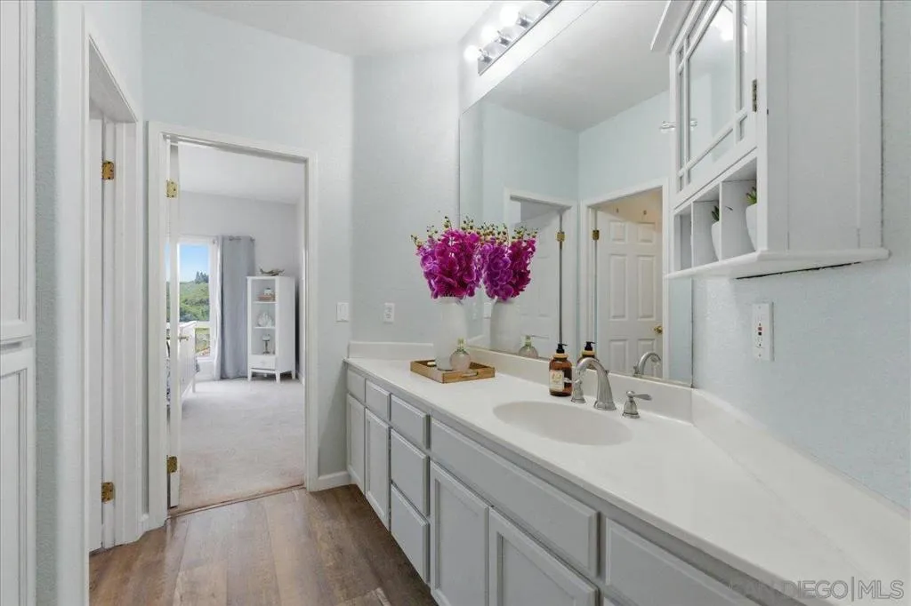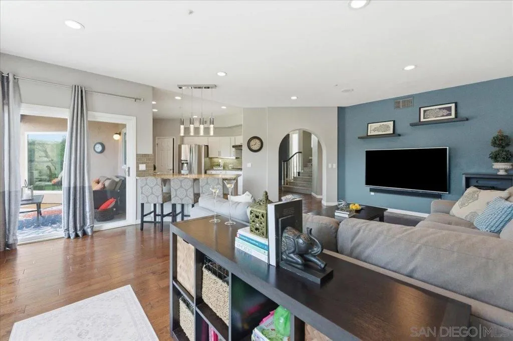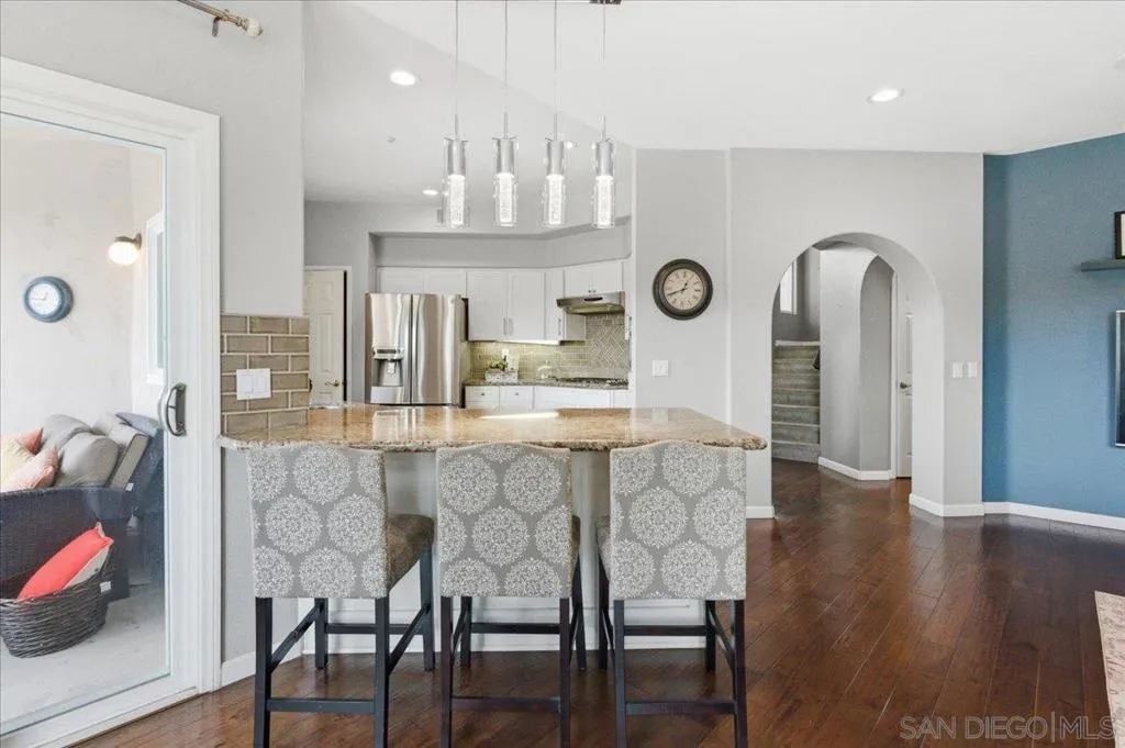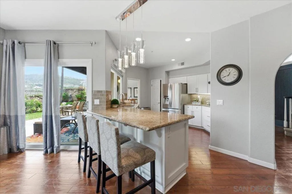 Bright, airy, and beautifully upgraded, this 3-bedroom, 2.5-bath home is tucked away on a quiet cul-de-sac inside a gated Rancho San Diego community offering privacy and security. Step inside to soaring vaulted ceilings and an open, light-filled layout featuring updated hardwood flooring, recessed lighting, and expansive windows that frame scenic mountain views from the bedrooms. The remodeled kitchen is designed for both everyday living and entertaining, showcasing granite countertops and backsplash, updated cabinetry, stainless steel appliances, and generous counter seating that flows seamlessly into the main living area. Recent improvements include new windows (approx. $20K investment), new carpet, a newer AC unit (1–2 years), and a partially replaced roof, giving peace of mind and modern comfort. The spacious primary suite and secondary bedrooms enjoy tranquil mountain vistas, while the functional floor plan offers flexible living and dining spaces ideal for gatherings. A private backyard patio extends your living space outdoors. Residents enjoy resort-style amenities with low HOA fees, including a community pool, tennis court, basketball court, and playground. Conveniently located near shopping, dining, and top local amenities, this move-in-ready home combines style, upgrades, and an unbeatable gated setting in one of Rancho San Diego’s most desirable neighborhoods.