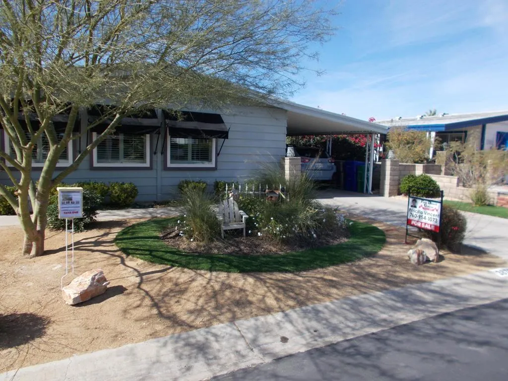 This beautifully updated two-bedroom, two-bath home boasts designer finishes throughout. Crown molding and laminate floors provide a touch of elegance, while shutters in the living and dining areas enhance the welcoming atmosphere--perfect for entertaining guests. The kitchen is equipped with custom quartz countertops, a modern backsplash, ample cabinetry with soft-close drawers and pull-out shelves, newer stainless-steel appliances, and a practical butcher block island, creating an ideal space for cooking. The primary bedroom features a spacious walk-in closet with built-ins and mirrored doors, as well as an en suite bath with a large tiled walk-in shower. For guests, there's a Murphy bed and a dedicated bathroom to ensure comfort during their stay. Outside, a landscaped private patio makes an excellent spot for relaxing or hosting gatherings. Situated in the heart of the desert, Palm Desert Greens Country Club is considered one of the top 55+ communities in the area. The affordable $400 monthly HOA fee covers 24/7 guard-gated security, cable TV, internet, trash service, FREE GOLF, and so much more. Come see why this exceptional home could be your ideal retreat. SELLER IS MOTIVATED AND ALL REASONABLE OFFERS WILL BE CONSIDERED!