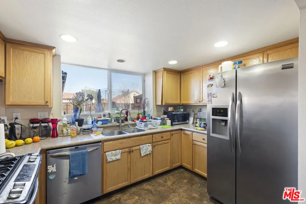 Great opportunity to own this 3-bedroom, 3-bath home in a sought-after Palmdale neighborhood. This property offers a spacious layout, abundant natural light, and strong upside for buyers looking to renovate and add value. Upon entry, the formal living room features an open, bright layout with a brick fireplace and flows into the dining area, creating an inviting space for everyday living and entertaining. The kitchen and bathrooms have been updated over time, and the functional floor plan includes a main-level bonus office/den and a guest bath with laundry access. Upstairs, the primary suite offers generous space, vaulted ceilings, and an en suite bath. Two additional bedrooms also feature vaulted ceilings and share a full hallway bathroom. The backyard is a blank canvas ready for customization, ideal for entertaining, landscaping, or future enhancements. Perfect for investors, contractors, or buyers looking to personalize a home to their taste. Don't miss the opportunity to unlock this property's full potential.