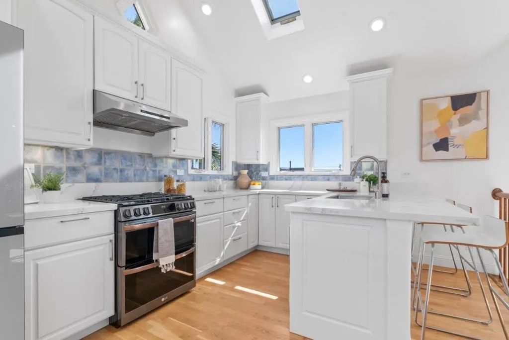 Unbeatable Pleasure Point location- just steps from iconic surf breaks, beaches and scenic coastal paths. Surf the Point or Rockview in only a 3 minute walk. Stroll just 6 minutes to Moran Beach to watch the sunset. Or head to East Cliff to walk the bluffs. Despite the easy access, this home is situated on a less traveled street where there is a sense of community and neighbors know each other. It is truly a special location. The home itself was custom built in 2004 with a reverse floorplan to capture ocean views down Rockview. The upstairs living area features high ceilings, abundant natural light & a freestanding gas fireplace. The kitchen boasts quartz countertops & new appliances. Step on to the deck to relax and listen to the waves or watch your pet play in the yard. Downstairs, the spacious primary suite opens to a private patio. A cozy second room works well as an office or for a daybed. Radiant heated flooring runs throughout. Outside, the fenced low maintenance yard is ideal for coastal living, complete with an outdoor shower and finished shed. Park your car in the backyard and leave it there. Bike to coffee or restaurants in only 4 minutes, or organic grocery stores in just 8 minutes. This home offers convenience and a relaxed coastal lifestyle- simply move in & enjoy.