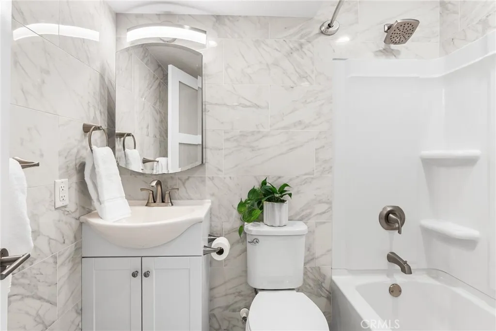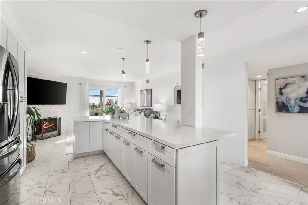 Ocean-view condo for sale in San Clemente’s Faire Harbour at Marblehead. This ground-level, single-level 2-bedroom, 2-bath condo offers panoramic ocean views, Catalina Island views, sunset views, city-light views, and a top-to-bottom remodel. One of the finest homes in Faire Harbour, the residence features approximately 984 square feet, an open-concept layout, two upgraded bathrooms, dual patios for indoor/outdoor living, and a detached finished 2-car garage with extensive cabinetry. The remodeled kitchen is the centerpiece of the home, complete with quartz countertops, an L-shaped island with bar seating, white Shaker cabinetry, pantry storage, and stainless-steel appliances. The living room includes a stylish corner fireplace and opens seamlessly to the enclosed ocean-view patio and adjoining outdoor patio, creating an ideal entertaining space. The primary suite enjoys ocean views, patio access, a walk-in closet with built-in organizers, and an upgraded bath. Additional highlights include luxury vinyl tile flooring, contemporary lighting, a Murphy bed in the guest room, washer and dryer, and a newer water heater. Appliances, patio furniture, 4 bar stools, Murphy bed, and primary bedroom bed are included. Faire Harbour residents enjoy open space, rolling coastal hills, a sand volleyball court, pool, and spa. Located just minutes from beaches, San Clemente Pier, schools, dining, shopping, yoga, and the Outlets at San Clemente.