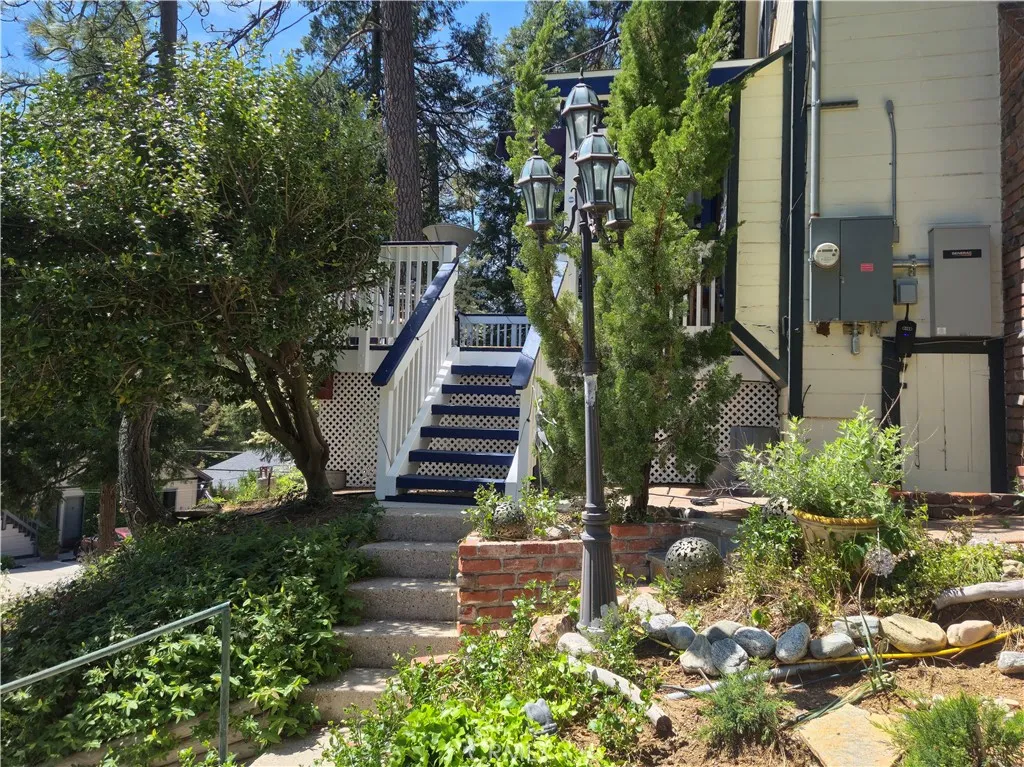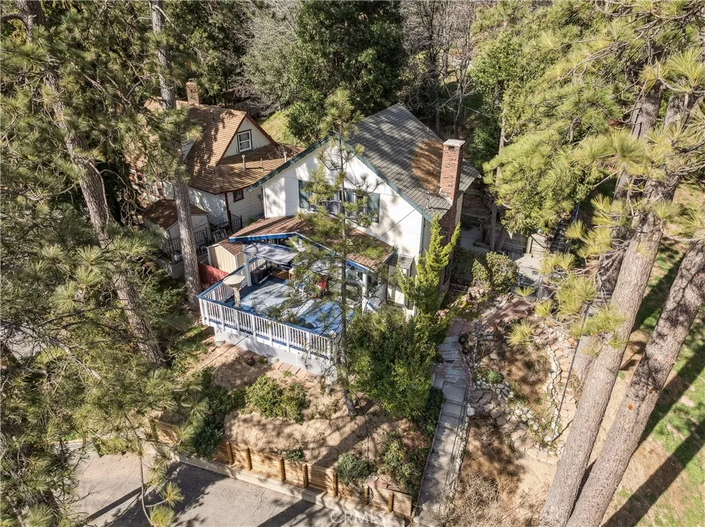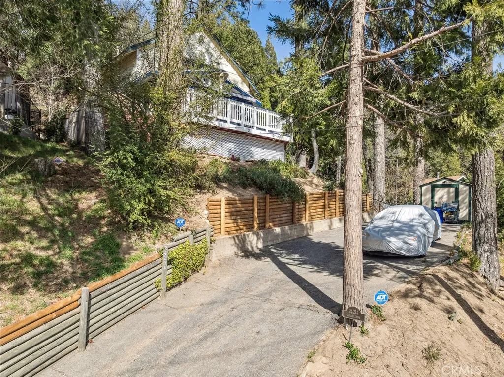 Modern rustic lake house blends nostalgic charm with updated luxury. Above the shores of Lake Gregory & moments from the heart of town. A one-of-a-kind mountain retreat captures the warmth of a classic mountain chalet yet offering comfort, efficiency, & convenience of a renovated Smart home. The oversized deck/porch provides an amazing setting, with ridgeline & lake views through the surrounding majestic cedars. Great for entertaining under the stars, watching 4th of July fireworks, & embracing the mountain resort lifestyle. Ideally located near lake trails, shopping, dining, entertainment, local services, & year round activities…this also makes for a great commuter location! The exterior features new decking, retractable awnings, 4+car parking, beautifully landscaped terraced gardens, a fenced oasis of a backyard creating a sense of privacy, two storage sheds (one with power), new retaining walls, upgraded electrical panel with room to grow, EV charger, & generator. Inside, new wood flooring & carpet complement custom oak ceilings, wood burning fireplace, copper plumbing, upgraded electrical with dimmers, farmhouse-style ceiling fans, mini-split, and top of the line amenities. The main level offers a welcoming living room, beautifully refurbished kitchen (wifi appliances & butcher block counters), dining area, ¾ bathroom, laundry, and direct access to the serene back yard. Upstairs are two bedrooms, including a luxurious primary ensuite with jetted spa tub with light therapy, bidet, and skylight. Second bedroom doubles as inspiring office/creative studio, complete with fiberoptic access, satellite dish & lake views. Don't forget the responding alarm system with cameras! This rare gem offers timeless character, modern upgrades, and a prime location. You have efficient & practical control of the home - even when away! Whether a full-time residence, weekend escape, or investment property, the rustic yet modern charm of this true mountain hide-away delivers!