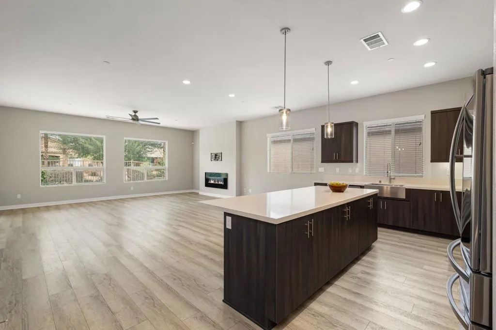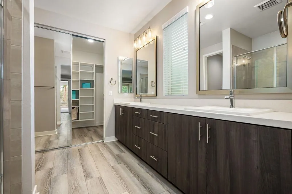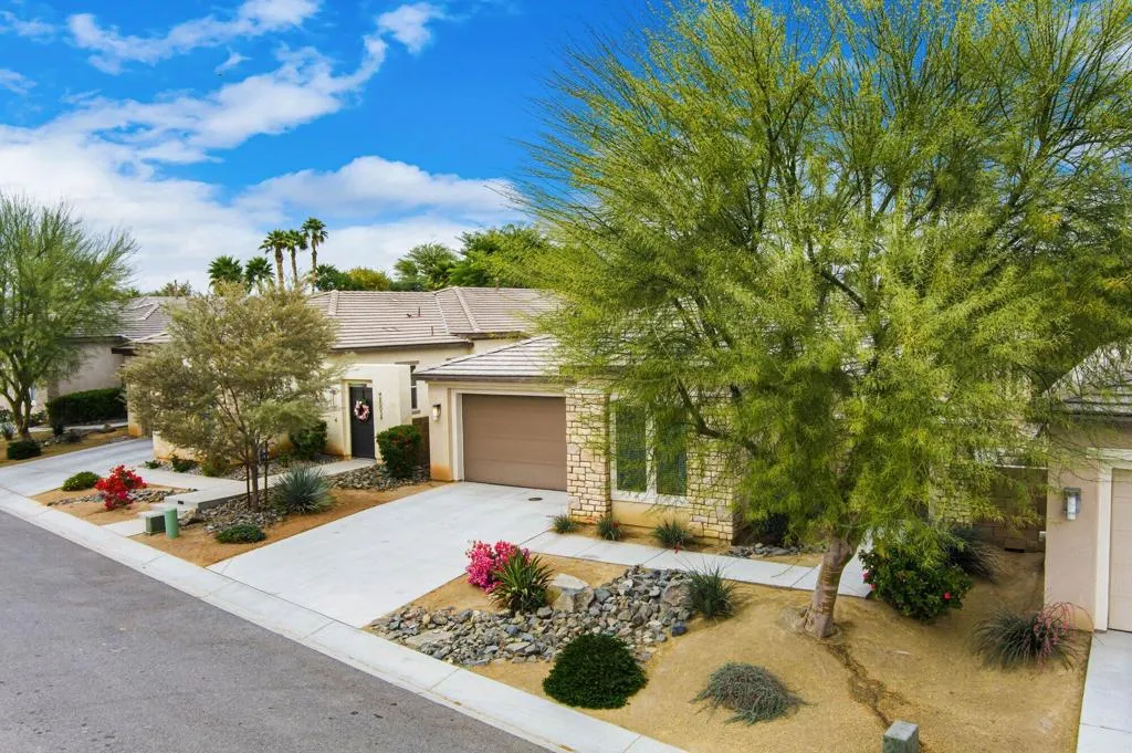 Welcome to The Gallery at Indian Springs, where lifestyle isn't just a bonus -- it's the whole reason you move here.Tucked inside an intimate enclave of just 25 homes, this beautifully upgraded 3-bedroom, 3-bath residence puts you at the center of everything that makes desert living so addictive. Tee it up at nearby world-class golf courses, grab dinner at one of the valley's top tables, catch a show at Acrisure Arena, or squeeze in a morning pickleball match before brunch. This location delivers the full Coachella Valley experience -- without the commute.Inside, the light-filled open floor plan was designed for effortless indoor-outdoor living. The spacious great room flows seamlessly through expansive sliding glass doors to a private patio overlooking the greenbelt and mountains. Morning coffee with a view? Yes. Sunset wine with friends? Even better.The chef's kitchen anchors the home with stainless steel appliances, a generous center island, and abundant cabinetry -- perfect for entertaining after a round of golf or a night at the arena. The primary suite is a true retreat with direct patio access, a walk-in closet, and a spa-inspired bath featuring dual vanities and a walk-in shower. Two additional guest bedrooms offer privacy and flexibility -- including one with its own en suite bath, ideal for visitors.Practical perks elevate daily living: a well-appointed laundry room with sink and storage, a spacious two-car garage, a dedicated golf cart garage, a Tesla charger, and a smart garage door opener for modern convenience.Residents of The Gallery enjoy lush greenbelts, a dedicated dog park, and a tranquil, well-maintained setting. Even better, homeowners receive a resident discount for membership at Indian Springs Golf Club, with a private gate and tunnel providing easy, direct access to the course -- because your tee time should never involve traffic.With premier golf, tennis, pickleball, dining, shopping, hiking, and entertainment just minutes away, this isn't just a home -- it's your gateway to the desert lifestyle done right.