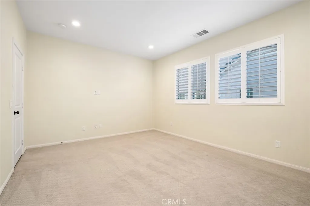 Downstairs includes a versatile fourth bedroom currently set up as an office, along with a half bath. Upgraded carpet has been installed on the staircase and in all bedrooms. Upstairs offers three additional bedrooms with recessed lighting, professionally installed closet organizers, plantation shutters, and a spacious loft.