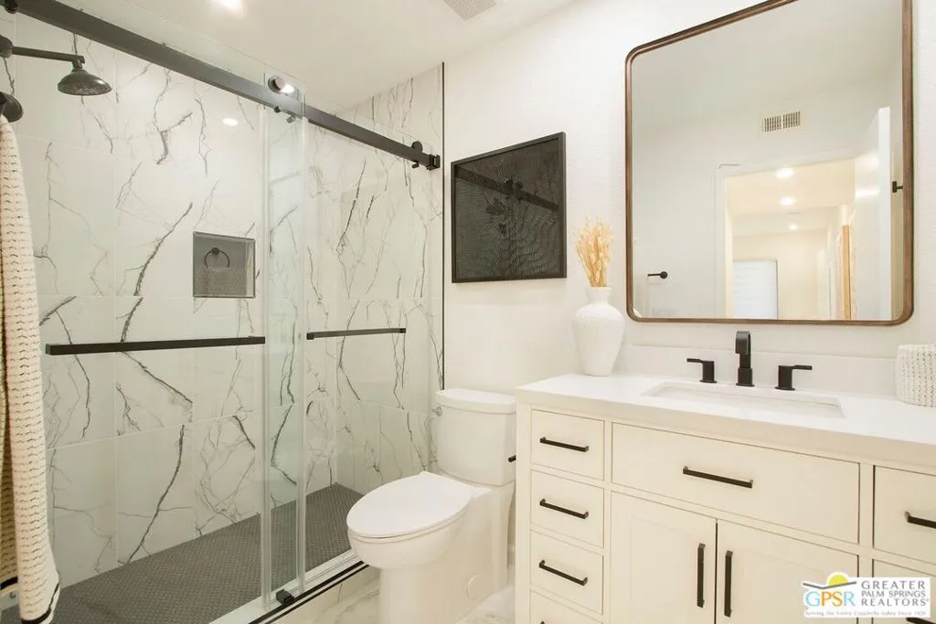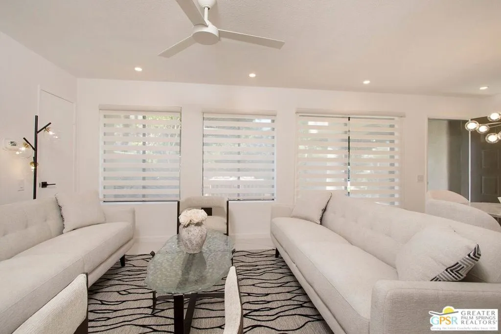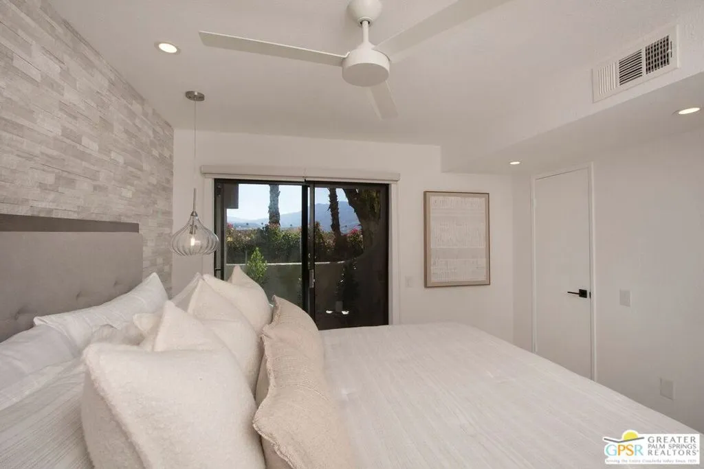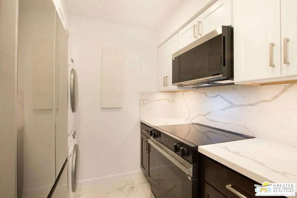 Absolutely Stunning Remodel !! 2 Bd 2 Bth condo - Central Palm Springs - Location Location Location !! Walking distance to town, completely remodeled by local designer Amaradio Designs - All New Furnishings included in Listing Price!! Dual Primary Bedrooms both w/en-suite bathrooms & Walk In Closets !! Oversized Gorgeous showers W/Diverter Valves. Primary suite 1 has a private patio with breathtaking mountain views. Kitchen features: Modern Quartz Counters W/double waterfall edges in Calcutta Marble Style & full backsplash to match. Counter Depth Refrigerator, front loading washer/dryer, convection oven, microwave, Ultra Quiet Dishwasher & vented exhaust. Beautiful kitchen cabinets w/soft close in Espresso & white design, Ample storage, counter space, & pantry. Large white gloss Porcelain tiles throughout, ceiling fans, LED Recessed lighting, dimmers, Custom Levolor Banded shades, & tankless hot water heater !! Enter through your own private gate to your large patio/yard !! This home has been completely remodeled from top to bottom - Turn-Key ready for its proud new owner !! Located in the gated community of Casa Verde, with Low HOA & low Land Lease (Extended to 2067) - Fully Financeable !! Seller is a licensed CA real estate agent. This is a must See !!
