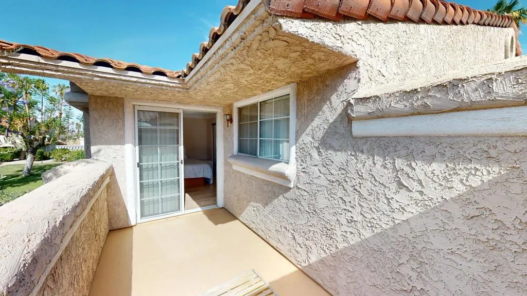 Welcome to your desert retreat at Mesquite Country Club!Just minutes from Downtown Palm Springs and its world-class shopping and dining, this beautifully appointed 2-bedroom, 2-bath condo is ready for you. Located directly across from the pool, with tennis courts a short walk away, this unit boasts stunning views from the balcony, living room, and primary bedroom.The guest room features its own private balcony with peek-a-boo mountain views, while vaulted ceilings add an airy, spacious feel throughout. Partial furnishings are included and can be kept or removed based on the renter's preferences.Don't miss this opportunity to enjoy both comfort and convenience--along with the iconic Palm Springs lifestyle.