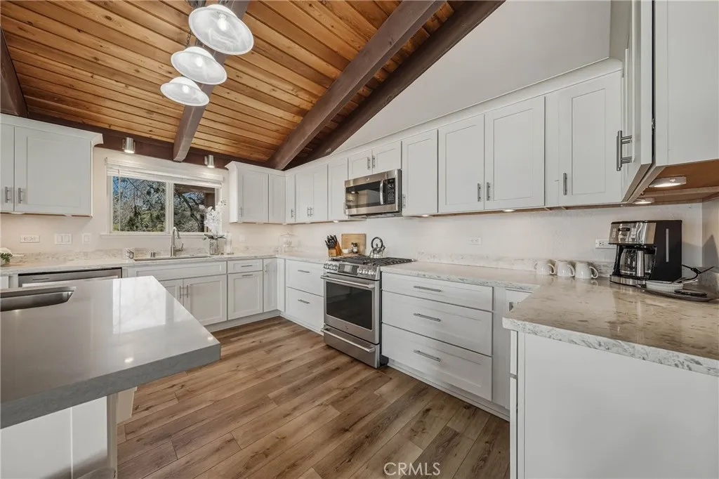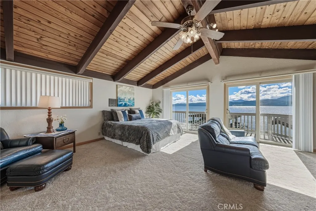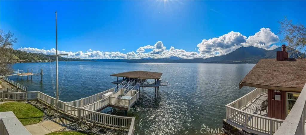 This gorgeous lakefront property features multiple units, a private launch, and a dock equipped with two power boat lifts. Owned by the same family for generations, the home has been meticulously maintained and modernized for today’s buyer. The main residence was designed with an open floor plan and large picture windows that frame stunning lake and mountain views. The great room boasts vaulted exposed-beam ceilings and integrates seamlessly with the dining area and a remodeled kitchen. The kitchen features stainless steel appliances, ample counter space, and an impressive center island with seating for six. A sliding door off the dining area provides easy access for outdoor dining and enjoying sunsets over Mt. Konocti. The main home offers two bedrooms. The lower-level bedroom shares a custom-tiled hallway bathroom with a walk-in shower. The upper-level primary suite includes a fireplace, private deck, laundry center, office space, and a walk-in closet. The primary bathroom features custom tiling and a soaking tub. Additionally, there is an attached oversized two-car garage with pull-through access to the private boat launch, plus a two-car carport. The second unit includes a one-car garage, two bedrooms, and one bathroom. It features an open and airy great room and a tiled kitchen. Sliding doors lead to an attached patio, a landscaped yard, and the private power dock with two boat slips. This home is situated in a prime location with deep waters. Located only 2.5 hours from San Francisco and 2 hours from Sacramento, this property offers seamless access to Clear Lake, where you can enjoy water sports and fishing year-round.