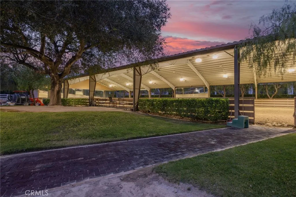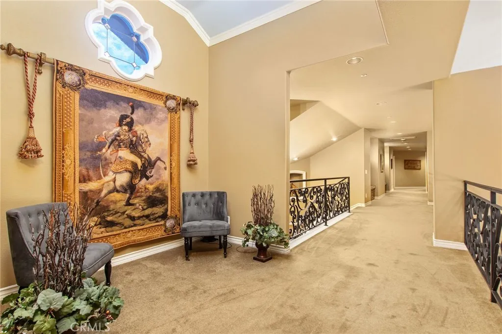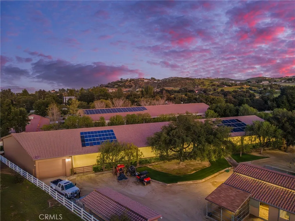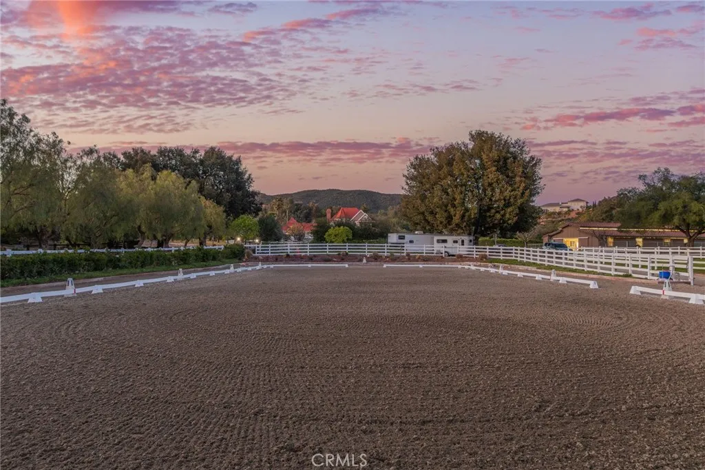 Welcome to one of La Cresta’s premier gated equestrian estates, offering over 5 acres of fully developed horse facilities paired with more than 8,500 square feet of luxury living. Designed for the serious equestrian, this exceptional property delivers a true training-level setup rarely found in Southern California. The professional-grade equestrian complex features both a covered arena and Olympic-size outdoor arena with premium footing and mirrors. The facility includes an 8-stall breezeway barn with indoor/outdoor box stalls, a 4-stall Mare Motel, tack room, wash rack, feed room, barn restroom, and dedicated laundry area. A separate covered hay barn and 70-foot roll-up garage provide ideal storage for horse trailers, RVs, or equipment. Three grass pastures and two dirt turnouts offer ample space for turnout and conditioning. Beyond the equestrian facilities, the estate offers a grand motor court and covered loggia leading into an elegant residence with soaring ceilings, a formal living room with fireplace, and French doors opening to the outdoor entertaining areas. The gourmet kitchen features dual Cove dishwashers, a large walk-in pantry, additional refrigeration, and a wine cabinet, flowing into the formal dining space. The main level includes a private living suite, two offices, and a spacious bonus room with full bar and cinematic entertainment setup. Upstairs, a mirrored gym with ballet barre and a luxurious primary suite with wet bar, fireplace, dual balconies, heated stone floors, steam shower, soaking tub, dual vanities, and two walk-in closets. The outdoor living area features a paver-stone driveway, solar-heated pool and spa, expansive patios, plus a garden and orchard with more than fifteen mature fruit trees. Additional highlights include a 4-car garage with EV charging, full-house gas generator, and private water well systems. All set in prestigious La Cresta, just minutes from top-rated schools, shopping, and Temecula Wine Country.