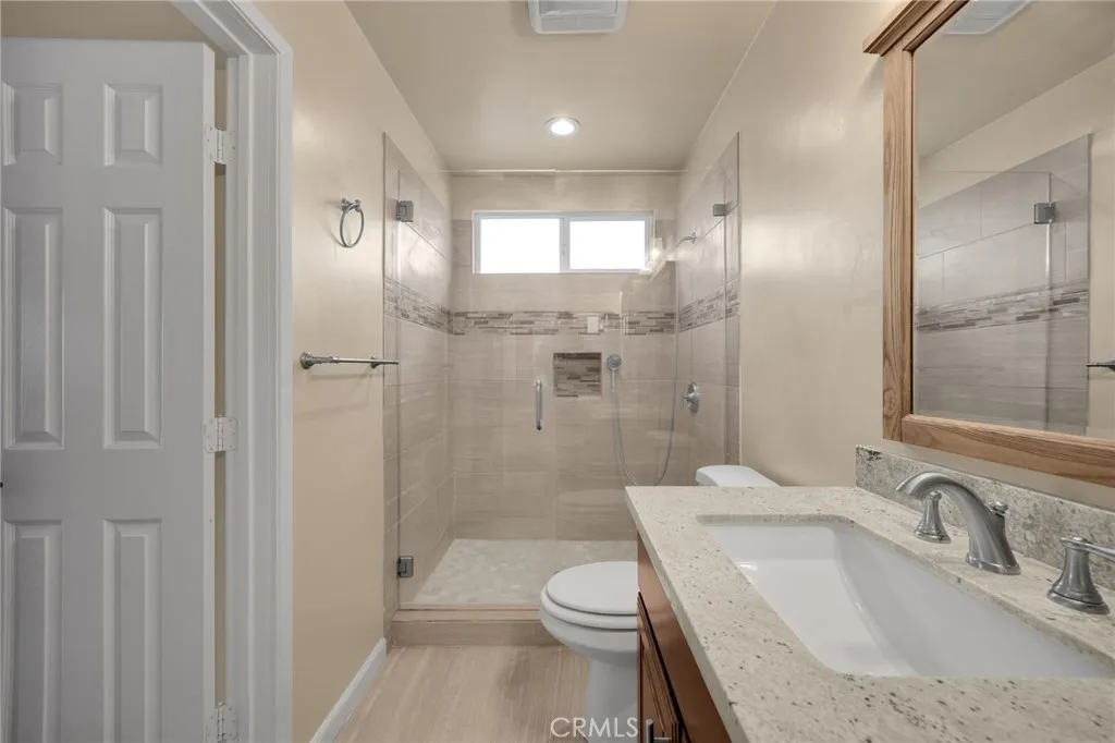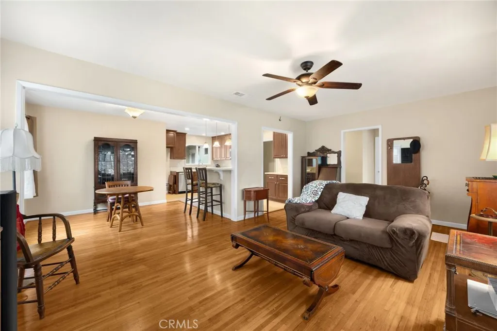 Beautiful spacious 5 bedroom 2 bath single story Lakewood home, located on a charming tree-lined street! As you walk up the brick pathway, you are greeted by a large front porch perfect for lounging .This home offers an open floor plan as you enter into the spacious living room filled with natural light from the large front window. Features gleaming original hardwood flooring that continues into the large dining area. The expansive ,remodeled kitchen possesses substantial counter space, with a breakfast bar and a buffet counter all with elegant stone countertops, and ample stylish cabinets. Frigidaire Gallery stainless steel stove, dishwasher and built in microwave, deep stainless steel sink with garbage disposal. Recessed lighting and light travertine flooring. The extra large primary bedroom offers laminate flooring, two large closets and french doors leading to a private patio. The fully remodeled primary bath features a luxury large walk- in shower with stylish neutral toned tiling and elegant glass door, custom dual sink vanity with sleek stone counter top, and tile flooring. Across the hall the 2nd bedroom includes 2 large closets and laminate flooring.The 2nd full bath has abundant space and an updated vanity with sleek stone counter. Three additional sizable bedrooms feature original hardwood floors and ample closet space. This home boasts significant storage throughout! Large separate laundry room steps from the kitchen includes the washer and dryer, and has access to the backyard. Modern upgrades include a NEW energy efficient tankless water heater, copper plumbing, newer central A/C & heating system with updated ducts. Plenty of parking with a long driveway and 2-car garage! Two large tough sheds provide even more storage! Convenient to shopping, dining, schools, park, Long Beach Airport, and freeways!
