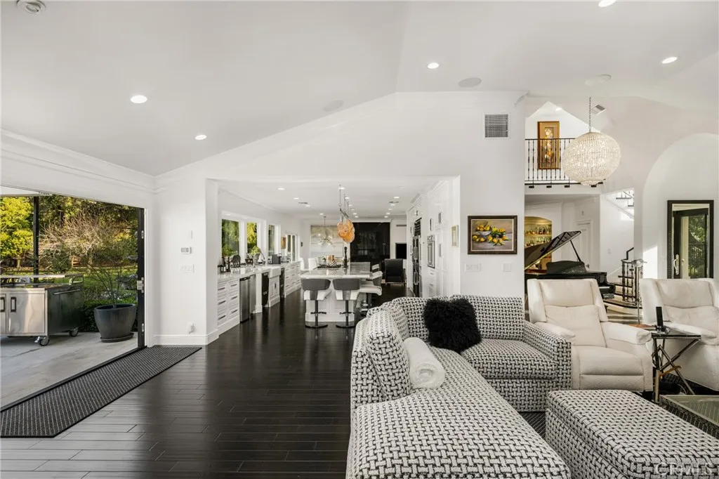 Set along the edge of Peters Canyon Reserve, this move-in ready luxury estate spanning .94 acres captures sweeping views of rolling hills, mountains and meadows in a setting that feels both peaceful and connected. The architecture is refined yet clean, executed with superb materials and meticulous attention to detail. The homes interior and furnishings were curated by a renowned Newport Beach designer, reflecting a balanced blend of sophistication and warmth. Custom millwork and cabinetry, inlaid stone, and hardwood flooring,and Anderson french doors and windows complement expansive walls of glass that bathe the interiors in natural light. Retractable custom glass doors create a seamless transition between indoors and out, extending the living spaces to generous terraces of limestone designed for both everyday enjoyment and elegant entertaining. Designed to live primarily as a single-story residence, the home offers all main living areas and secondary bedrooms onthe first leve, with only the private primary suite situated upstairs-creating a peaceful retreat elevated above the surrounding landscape. AN EXTENSIVE RENOVATION BY THE CURRENT OWNER INTRODUCED A THOUGHTFULLY REIMAGINED OPEN FLOOR PLAN WITH SOARING CEILINGS, A PRIVATE OFFICE AND DEDICATED EXERCISE ROOM IN ADDITION TO THE THREE BEAUTIFULLY APPOINTED BEDROOMS. The backyard unfolds as a private resort A sparkling pool and spa with limestone coping echo the terrace finishes, while multiple lounge areas and an expansive patio create an extrordinary environment. The fully integrated outdoor kitchen is outfitted with dual barbeque, refrigerators, dishwashers, and stainless steel cabinetry beneath striking slabs of richly colored malachite quartz countertops. ADJACENT TO THE ENTERTAINIG AREA, A RARE FLAT GRASSY LAWN- so seldom found on even other large properties -offers space for recreation, gatherings and endless other possibilities.