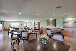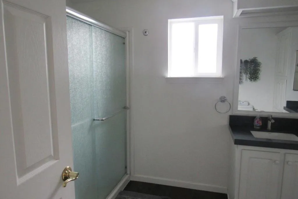 This beautifully SUN LIT home has plenty of natural light, shining through the many dual-pane windows. Gorgeous wood laminate flooring throughout. Great location just a few doors down from the clubhouse, pool, and spa. Entertain your family and friends inside the large living room/dining area or outside in the beautifully landscaped yard. One of the guest bedrooms has a sliding glass door out to the spacious porch. The main bedroom offers a large, custom walk-in closet and a private bath with dual vanities and a large step-in shower. Central heating & A/C. Laundry room comes with washer/dryer and lots of additional storage. Custom spacious fireproof shed at end of driveway 1999 Silvercrest S/N KCCA01K90832A/B