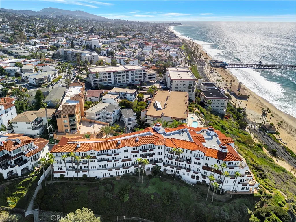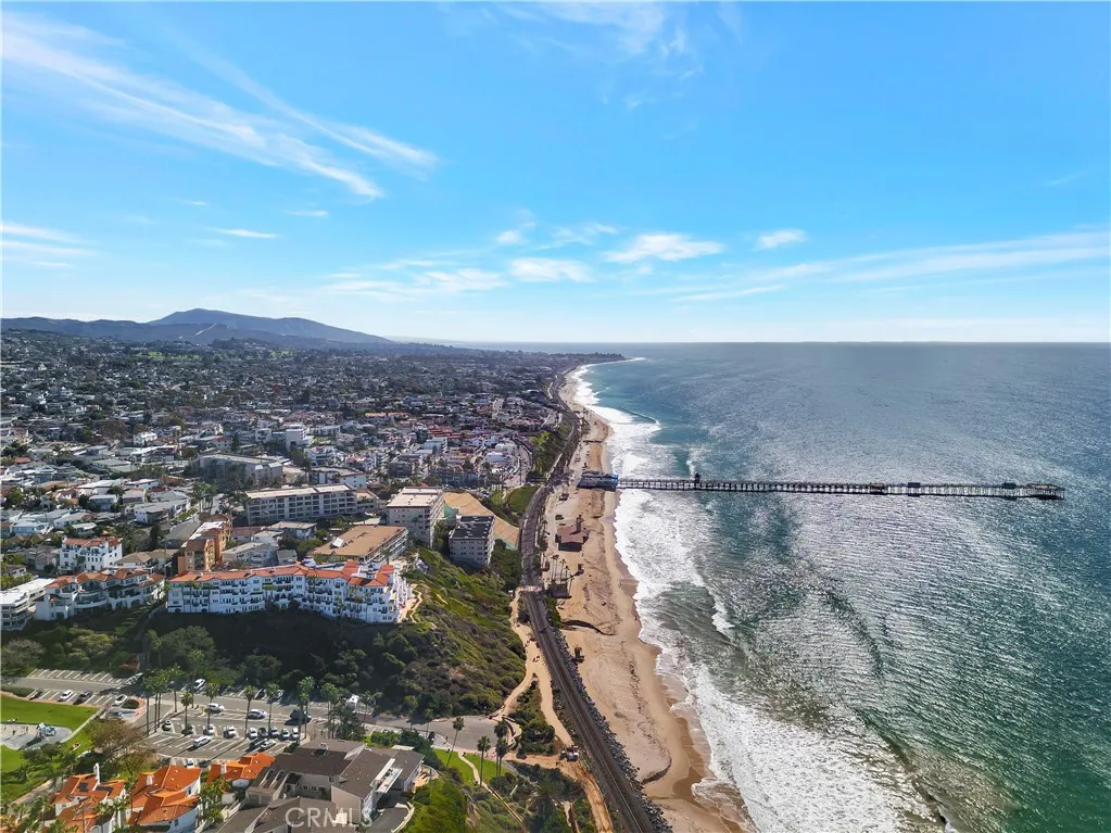 Live just steps to the sand! This Ocean & San Clemente Pier View open concept Vista Pacifica Villas single level condo is perfect for relaxing or entertaining. Large kitchen with granite counters and stainless steel appliances, dining room, and spacious living area make this perfect place to call home. Oversized Primary Bedroom and generous sized Secondary bedroom offer plenty of space. Both bedrooms feature French Doors leading to the Ocean View patio. Additional highlights include two designated parking spaces with electric vehicle charging station and guest parking. Vista Pacifica Villas is a gated community offering secured entry and two elevators. Situated in arguably the worlds greatest climate you will enjoy surfing, downtown shopping, restaurants, parks, festivals, and Southern California's coastal ambiance all within walking distance.