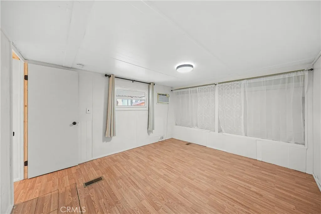 Welcome to this cozy 1-bedroom, 1-bath mobile home located in the heart of Fontana. This well-cared-for home offers a comfortable layout with thoughtful updates already in place, while leaving room for future personalization. An open living and dining area creates a welcoming space that flows into a charming kitchen, featuring a cooktop and newly installed sink and faucet, with room to add an oven and refrigerator to suit your needs. The bathroom has been refreshed with a new vanity, toilet, and shower head, and includes a convenient shower/tub combination. The bedroom offers generous storage with an entire wall of built-in closets and drawers. A separate laundry room includes a newer washer and dryer—both included in the sale—and provides direct access to the backyard. Outside, enjoy a small front porch, a low-maintenance side yard accented with white rock landscaping and mature fruit trees, plus a storage shed for added convenience. A two-car carport completes the home. Situated in a community that offers a pool and a clubhouse with tables and a kitchen, this home is a wonderful opportunity for buyers looking for affordability, functionality, and the chance to make it their own.