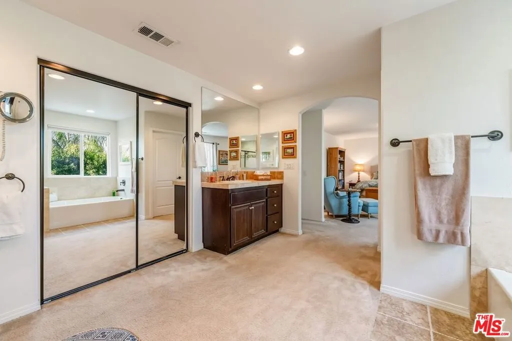 Welcome to 7466 Louise Ave., an elegant, contemporary Mediterranean home in the heart of Lake Balboa. As you enter through a grassy, set-back front yard and into the light & bright interiors, you're greeted by a dramatic formal living room that sets the tone. Soaring two-story ceilings, abundant natural light streaming through oversized windows, arched openings and a Juliet balcony to the home's upper level create a refined yet inviting space. An adjacent formal dining room flows seamlessly into a spacious family room complete with built-in surround sound, and anchored by a gas & wood-burning fireplace. Along with a large gourmet kitchen with quartz countertops and stainless steel appliances. A thoughtfully placed bedroom and full bathroom on the main level provide flexibility as a private guest suite or home office. At the center of the home, a grand staircase with wrought iron railings leads to an upper landing. Off of which you'll find two additional bedrooms with a full Jack-n-Jill style bathroom. And the piece de resistance, a luxurious primary suite with a walk-in closet and a beautifully appointed en-suite bathroom, creating a calm and restorative escape from the day. Enjoy the property's private, hedged-in yard, where you can spend evenings around the outdoor gas fire pit or unwind in the 45-jet Caldera Palatino hot tub spa. Other features include an oversized two-car garage with generous storage space, and a 30-amp EV charger. Smart-home additions include a Honeywell smart thermostat, a six-zone indoor/outdoor sprinkler controller, wiring for Ethernet, telephone, cable, and a security system, and 17 Tesla solar panels under a transferable lease. Centrally located, this home offers the best of suburban tranquility with exceptional walkability. Starbucks, Humble Bee Caf, Ralphs, and a variety of dining and shopping options are a five-minute walk away, while a five-minute drive brings you to the largest park in the Valley, home to the namesake Lake Balboa, swan boats, Japanese Gardens, fishing, miles of cycling paths, three golf courses, and endless outdoor recreation. Come experience refined comforts and an unbeatable location in one of the Valley's most central and desirable neighborhoods today.