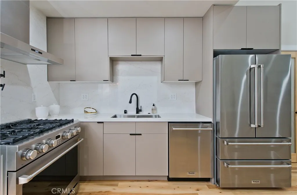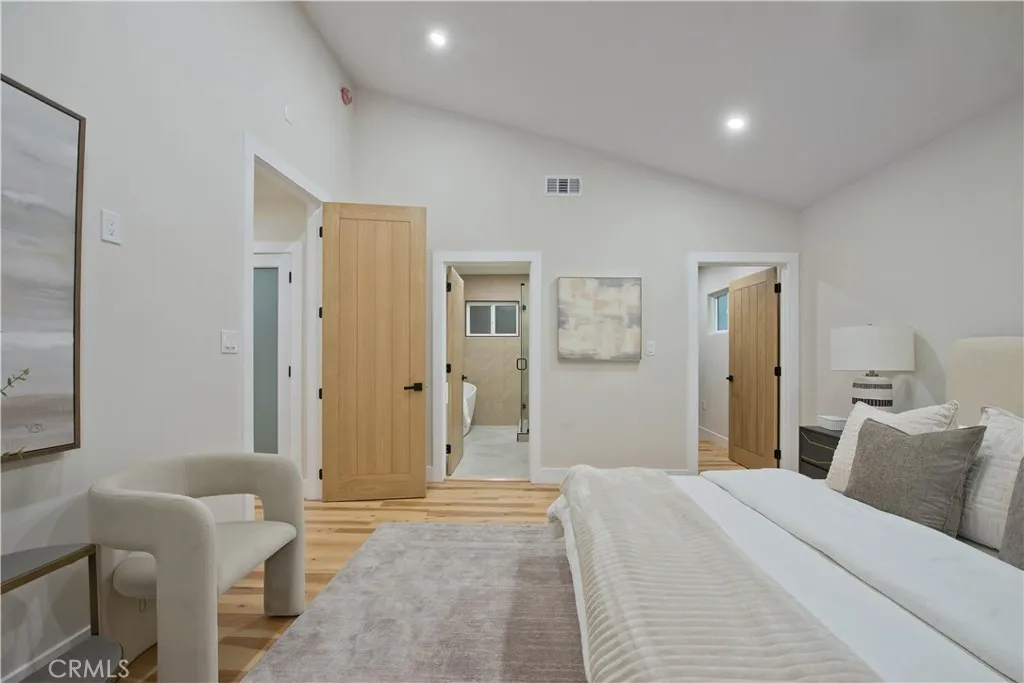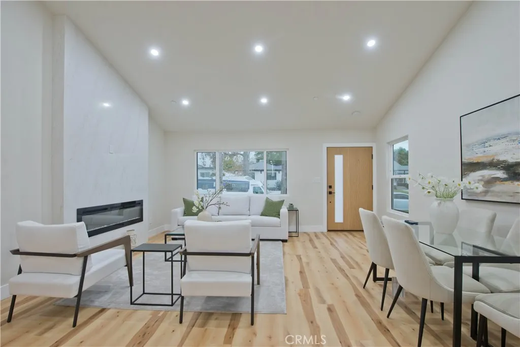 Discover a rare investment and lifestyle opportunity at 17905 & 17907 Bullock St in the highly sought after neighborhood of Encino Park. This thoughtfully upgraded dual-residence property offers exceptional flexibility—perfect for extended families, generating rental income, or living in one home while leasing the other. The main home has been completely remodeled and spans 1,753 square feet with 4 bedrooms and 3 bathrooms. Bright, open, and contemporary, the living room features soaring ceilings, luxury vinyl plank flooring, and a seamless open-concept design ideal for everyday living and entertaining. The chef’s kitchen is a standout, appointed with premium Thor stainless steel appliances, sleek quartz countertops with a waterfall-edge peninsula, a full-height quartz backsplash, walk-in pantry, and convenient pot filler. The living area centers around a striking quartz-framed electric fireplace, creating a warm yet modern focal point. The spacious primary suite serves as a private retreat, complete with a walk-in closet and spa-inspired bath showcasing a soaking tub and designer-tiled shower. Additional highlights include a junior suite, dedicated laundry room, tankless water heater, white stone accents, and a 1-car garage equipped with an EV charger. Built in 2025, the newly constructed ADU at 17907 Bullock St offers 752 square feet with 2 bedrooms and 2 bathrooms. Designed for privacy and efficiency, it features a separate entrance from Oxnard Street, carport parking, laundry hookups, fully electric systems, owned solar panels, and its own tankless water heater—making it an ideal turnkey rental or guest residence. Both homes benefit from extensive upgrades, including new PEX plumbing, a new sewer line, new roofing, central HVAC, fire sprinkler systems, double-pane windows, and LED recessed lighting throughout. Designer finishes elevate the exterior and interior alike, from floating vanities and heated anti-fog LED mirrors to smooth Santa Barbara stucco, modern fencing, and raised garden beds for your home grown vegetables. Conveniently located near Ventura Boulevard’s shops and dining, local parks, farmer's market, this move-in-ready Encino property offers versatility, modern comfort, and long-term value.