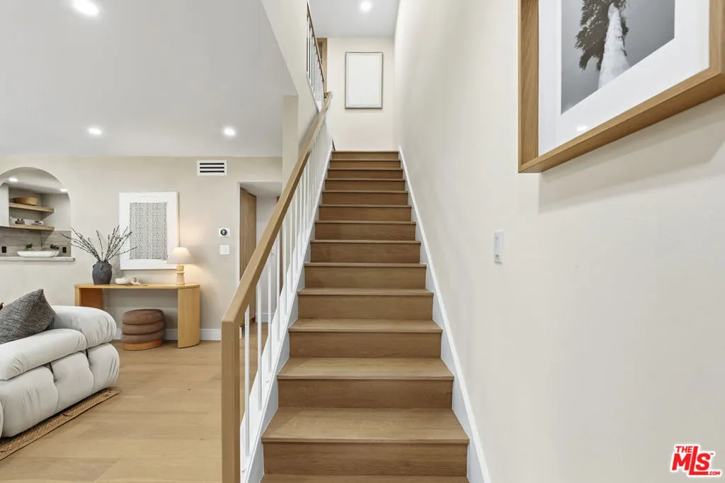 Like fine porcelain, the craftsmanship of this Villa Milano split-level townhouse is refined, timeless, and impeccably composed. Every detail reflects a thoughtful balance of elegance and comfort, where soft white and ecru tones are accented by striking notes of black and gold, layered with subtle textures that speak to NOF Design's sustainable, design-forward philosophy where beauty, purpose, and efficiency exist in perfect harmony. This residence has been meticulously curated from top to bottom, featuring elevated finishes throughout: large plank engineered European oak hard wood flooring, double pane windows and sliding door, electric fireplace, custom cabinetry, premium appliances, refined hardware, designer lighting, fluted porcelain tilework, bespoke closets, and more. The result is a rare pride-of-ownership offering that seamlessly supports a wide range of lifestyles and daily needs. Set within a beautifully landscaped, gated community in the heart of Marina del Rey, this expansive architectural floor plan showcases a light-filled two-bedroom, two-and-a-half-bath layout with a private patio, direct-entry side-by-side two-car garage, and additional storage. Natural light flows effortlessly through the split-level design, enhancing the home's sense of openness and tranquility. Residents enjoy resort-style amenities including a pool, sauna, manicured greenbelts, and pet-friendly living. HOA dues include water, Spectrum TV and internet service, Wi-Fi modem, and two DVRs offering both convenience and value. Beyond the gates, the neighborhood delivers an exceptional coastal lifestyle with easy access to LAX, major freeways, public transportation, markets, boutiques, acclaimed dining, movie theaters, parks, the marina, beaches, and scenic bike paths along with a vibrant calendar of community events. A sophisticated coastal retreat where thoughtful design meets everyday luxury.