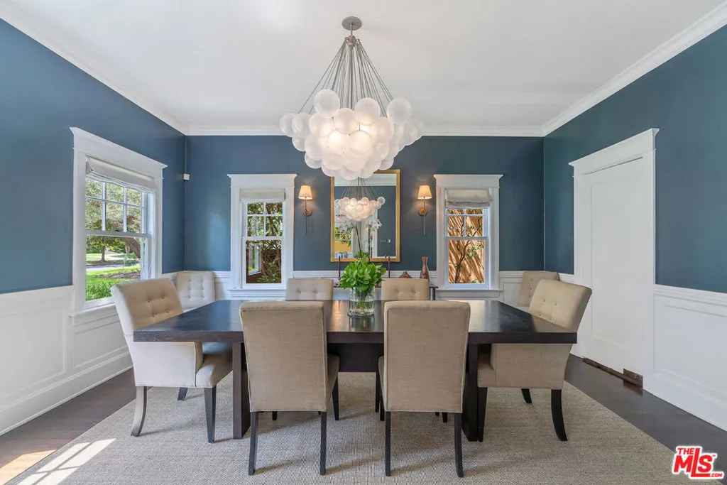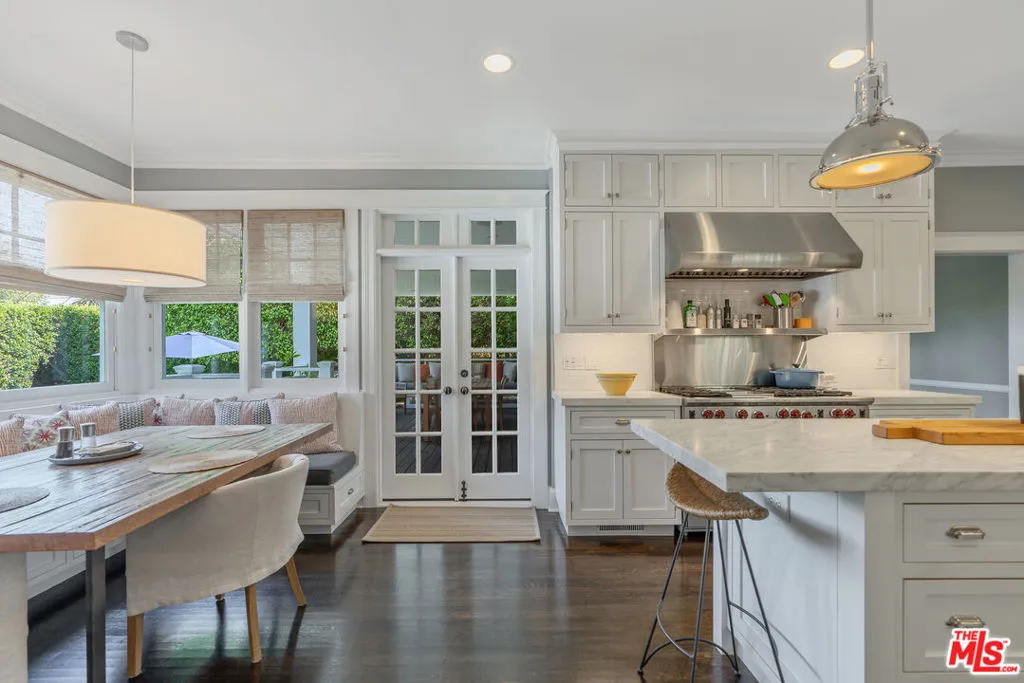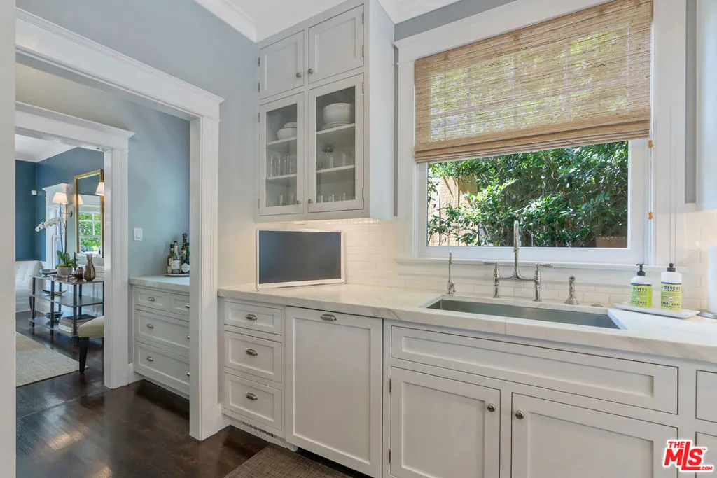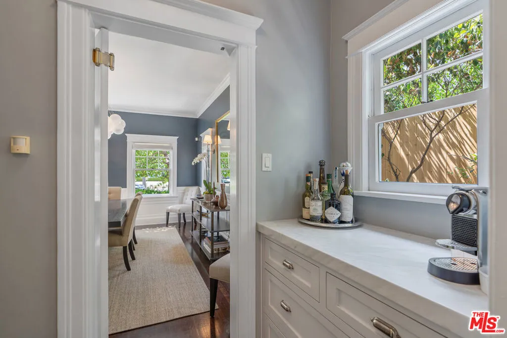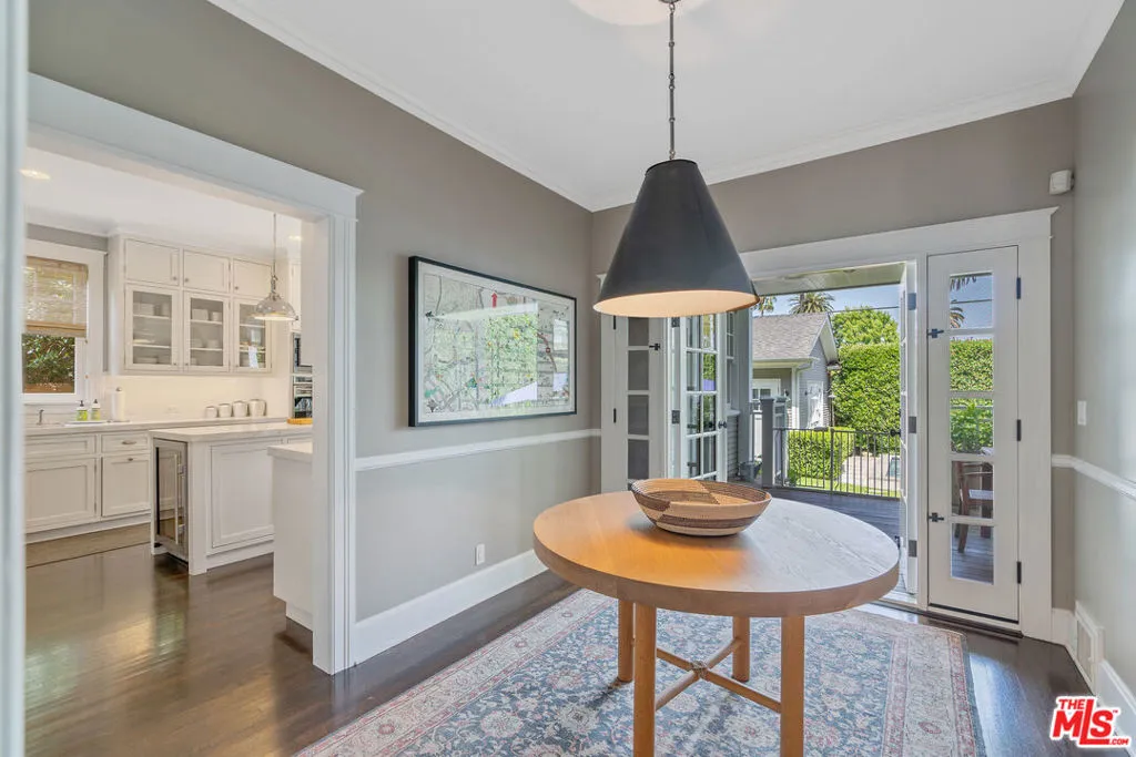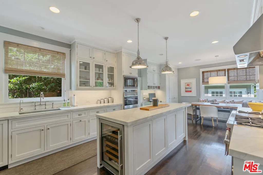 Beautiful East Coast Traditional on Coveted Irving Blvd in Prime Windsor Square. Welcome to this light-filled home that's been lovingly remodeled while keeping all its original charm. A graceful center hall with a sweeping staircase sets the tone as you step inside. To the right, a bright living room with a fireplace opens through French doors to a cozy den overlooking the yard, the perfect spot to relax, watch TV or read a book. A breakfast room connects to the fantastic cook's kitchen featuring high-end appliances, a large center island, tons of storage, and endless counter space. There's even a casual dining area and hangout space with views of the gardens. The back of the house opens to a large entertaining deck that's ideal for summer BBQs and family dinners. You'll also find a formal dining room, a small butler's pantry, and a stylish powder room on this level. Upstairs, the spacious primary suite sits quietly at the back of the house and includes a large walk-in closet, a spa-like bath with a steam shower, and a private roof deck with city and neighborhood views. Three additional bedrooms, two beautifully remodeled bathrooms, and a laundry room complete the second floor. The third floor offers a great bonus space perfect for a gym, playroom, or home office. Out back, the private, hedged yard feels like your own little retreat with a newer pool and spa, outdoor shower, and a great guest house for family and friends. All this just moments from Larchmont Village and everything Windsor Square has to offer. Square footage includes the main house, 3rd floor gym/office and guest house.