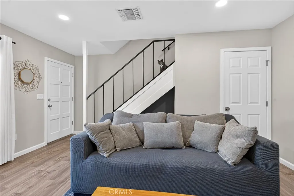 Welcome to 9780 Las Lomas #7 in Atascadero — a thoughtfully upgraded 2-bedroom, 2-bathroom home tucked into the quiet back corner of an intimate community, offering rare privacy with only one shared wall and peaceful greenbelt views from the living room and primary bedroom. Extensively improved with both style and substance, major updates include central heating and air (installed 2022, serviced 2024), dual-pane vinyl windows and sliding door, updated plumbing, new plugs and switches, a new roof in 2024, and full fumigation completed in 2025 — providing confidence for years to come. Natural light fills the open living space, enhanced by recessed lighting and modern finishes. The kitchen shines with white shaker cabinetry featuring soft-close doors and drawers, quartz countertops, a black granite sink, designer backsplash, stainless steel Samsung appliances, custom pantries, and a charming coffee bar for added storage and functionality. Upstairs, two generously sized bedrooms offer remote-controlled ceiling fans, mirrored closet doors, and blackout shades. A Nest thermostat adds smart-home convenience. The primary bathroom is beautifully renovated with an oversized soaking tub, tiled shower surround, updated exhaust fan with integrated light, and contemporary fixtures. A second bathroom provides flexibility for guests or everyday living. Outdoor space is equally impressive. One of the larger lots in the community, the property features four front flower beds, a newly added gate, and a private wraparound yard with low-maintenance turf. A storage shed is included, and Edison string lighting creates a warm setting for relaxing or entertaining. Additional conveniences include remote-controlled blinds throughout (excluding the kitchen), two assigned parking spaces (one standard, one parallel), and a nearby communal laundry facility with three washers and three dryers offering both app and coin operation (approximately 29-minute wash and 45-minute dry cycles; usage fees apply). The HOA, approximately $500/month as of January, covers water, trash, sewer, exterior maintenance (roof, fencing, gutters, pest control and tenting if needed), landscaping, exterior insurance, and monthly cleaning of the laundry facility — allowing for low-maintenance living. Private, extensively upgraded, and thoughtfully maintained — this is a rare opportunity to own a beautifully improved home in a desirable Atascadero location.