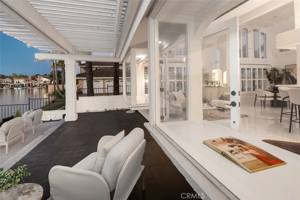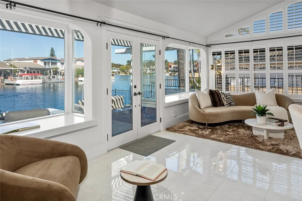 This residence reads less like a conventional home and more like a study in proportion, light, and reflection. Positioned on a rare inside corner lot, the property opens outward to a broad main channel panorama where the water widens and the horizon lingers. From nearly every vantage point, the lake becomes part of the composition, not simply a backdrop but a constantly shifting material that animates the house throughout the day. The exterior presents a restrained modernist language, crisp planes of white softened by shadow lines from mature palms and the geometry of the dock beyond. As the home wraps the corner, it reveals itself gradually, a sequence rather than a façade. The waterline deck extends like a continuation of the living space, dissolving the boundary between structure and shoreline. Inside, the plan unfolds with an almost gallery-like clarity. Surfaces remain intentionally calm, allowing volume and perspective to take precedence. Wide openings frame long water views that shift as you move, producing a subtle sense of procession through the home. The living spaces orient toward the channel, while softer, more intimate moments appear along the periphery, reading corners, curved seating arrangements, and layered sightlines that create both openness and refuge. The kitchen sits as a sculptural center rather than a separate room, its soft forms and pale palette reflecting daylight deeper into the interior. Two primary suites, one upstairs and one downstairs, allow the home to function across different rhythms of living. The lower suite maintains immediate connection to the water and outdoor terrace, while the second primary becomes a retreat elevated above the shoreline with a longer perspective across the channel. Outdoor living is treated as an extension of architecture rather than an addition to it. The covered terrace acts as an intermediary space, shaded yet open, where breezes move through and the sounds of water remain constant. The dock sits within the protected interior corner of the lot, reinforcing both privacy and the expansive feel of the main channel view. Boats pass at a distance, never dominating the experience, only punctuating it. Here, architecture becomes a lens through which the setting is continuously rediscovered, morning glassy and still, afternoon bright and active, evening quiet and reflective, each moment framed deliberately, each perspective considered.