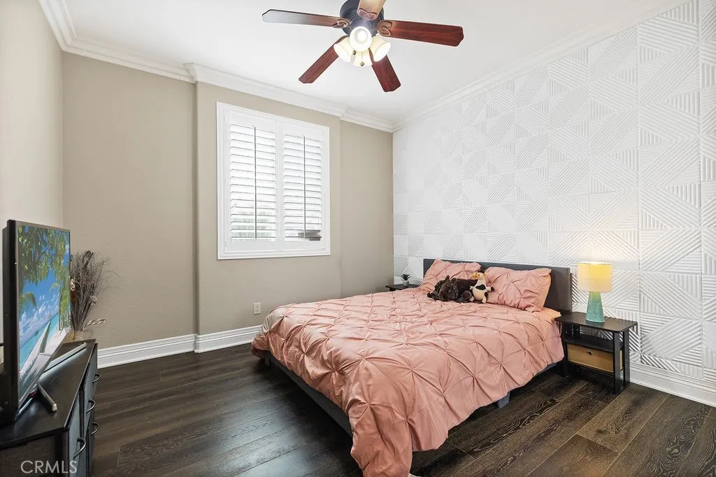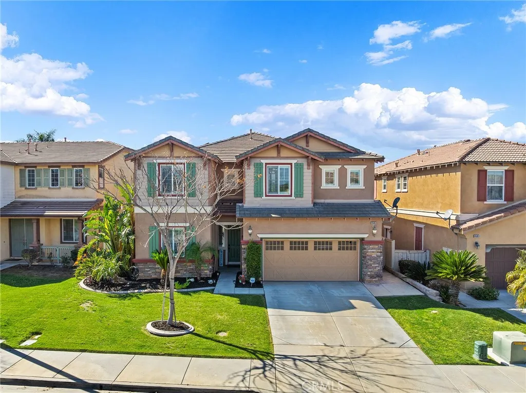 Live in a Life-Size Gingerbread House! This incredible, well-maintained Residence is designed to enjoy and entertain - with 5 bedrooms (1 Bedroom DOWNSTAIRS), and 4 Full bathrooms (1 DOWNSTAIRS), it has rooms for kids, parents, in-laws and guests, and comfort and privacy are part of the package. Starting with extraordinary curb appeal, this Home welcomes you into a Two-story Living Room space connected to an elegant Dining Room; The Heart of the Home is a generously sized Family room connected to an Open Kitchen with upscale Rye-color Cabinets and modern white Quartz countertops that offers Peninsula Bar seating, an Island, and a Breakfast nook, with two sets of Sliding doors leading to the spacious Backyard with a View of the Golf Course. Huge Alumawood Patio Cover and abundant ambient outdoor Lighting are designed for al fresco dining pretty much year-round, in the mild Southern California Climate. Come for a Visit and be wowed by the Huge Owners' Suite, Oversized Loft, Tall ceilings, Crown Molding, Walk-in Pantry and Closet, Epoxy-floored Garage with Overhead storage, and peaceful location on a beautiful Street where Neighbors take pride in maintaining their Homes. Low HOA, low utility costs (Solar at only $170/month), abundant space and storage, and the Best Schools the City has to offer - Congratulations, your Wishlist is complete!