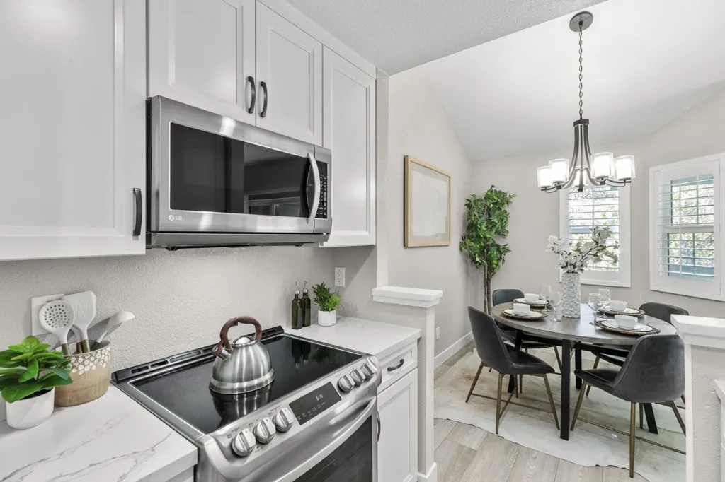 THIS IS IT!!!! Stylish, bright, and completely remodeled! This stunning 1-bedroom, 1-bath upper-level home has been thoughtfully upgraded from top to bottom...with over $140k in upgrades! Step inside to discover soaring vaulted ceilings and an open, airy layout. The new kitchen showcases gorgeous Carrara quartz countertops, shaker-style cabinets, and matching LG stainless appliances — perfect for both everyday living and entertaining. The spa-inspired bath also features Carrara counters and a striking quartz wall in the shower, adding a touch of elegance and sophistication. Enjoy fresh finishes including new windows, new heavy duty interior doors, and sliding door, complemented by elegant plantation shutters that provide both style and privacy. A spacious walk-in closet with a built-in custom organizer offers exceptional storage and functionality. New sound absorbing wide plank flooring and contemporary light fixtures elevate the entire space, while a covered balcony extends your living area outdoors — the ideal spot for morning coffee or evening relaxation. With its open design and stylish upgrades, this unit combines comfort, functionality, and elegance in one beautiful package.