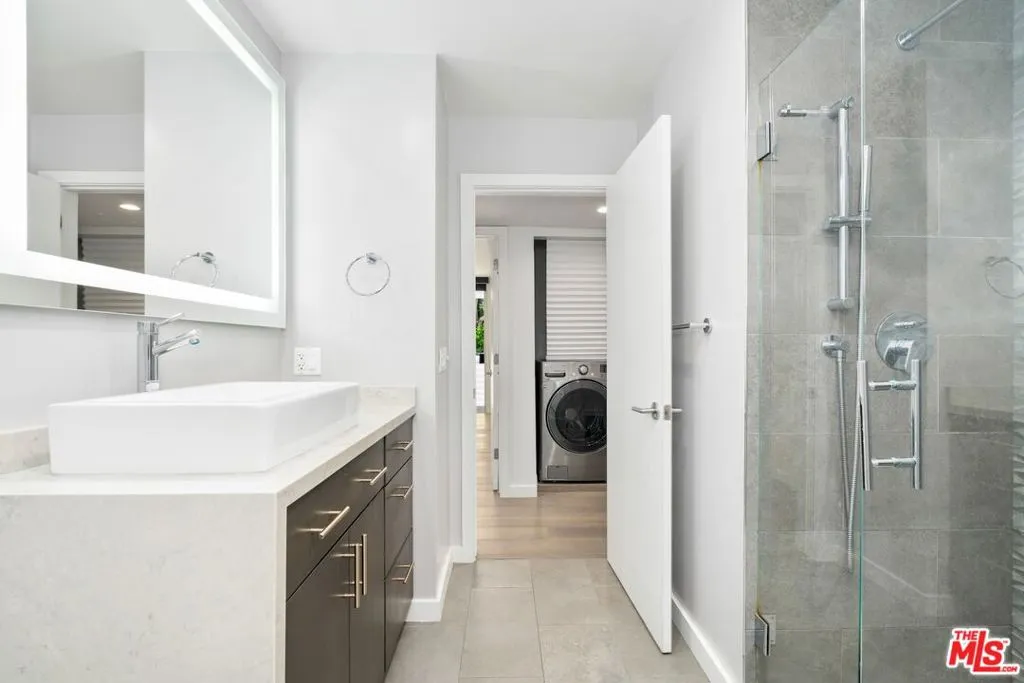 Stylish West Hollywood corner condo located just off the Sunset Strip and adjacent to Beverly Hills. This residence has high-quality finishes and a cohesive, modern color palette throughout. Light and bright living and dining areas feature a fireplace, walls of glass, and direct access to a wrap-around balcony with treetop and city views. The kitchen offers stainless steel appliances, including a wine refrigerator, center island with breakfast bar and storage, soft-close cabinetry, and an enlarged pass-through ideal for entertaining. The primary suite includes a fireplace, custom walk-in closet, and access to a private balcony. Modern bathrooms showcase contemporary finishes and thoughtful design. This home offers comfortable, turnkey living in a prime West Hollywood location.