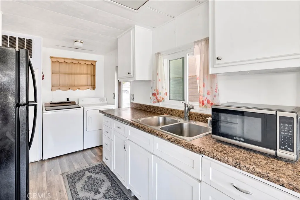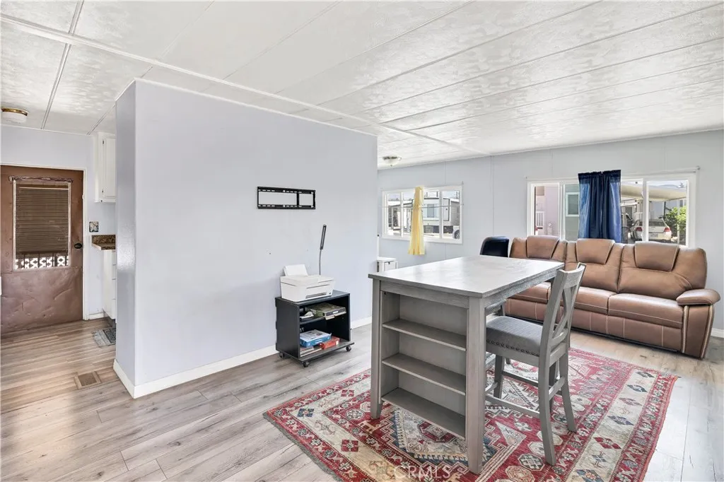 Welcome to this charming and budget-friendly 2-bedroom, 1-bathroom mobile home, ideally situated on a desirable corner lot in a peaceful 55+ community in Hemet. Offering approximately 800 square feet of well-designed living space, this home features a bright and open floor plan with updated laminate flooring throughout, adding a fresh and modern touch. Step inside to a light-filled living room that feels warm and welcoming—perfect for both quiet evenings and casual entertaining. The kitchen is functional and cozy, and the in-home washer and dryer hookups offer everyday convenience. One of the standout features of this property is the spacious covered front porch—ideal for enjoying your morning coffee, relaxing with a good book, or chatting with friendly neighbors. The corner lot location provides added privacy and curb appeal, with easy access and a little extra space to enjoy. Additional highlights include a covered carport with room for two vehicles and access to the community’s well-kept amenities, including a sparkling swimming pool and clubhouse. Whether you're downsizing or seeking an affordable and low-maintenance lifestyle, this move-in ready home checks all the boxes. Don't miss the opportunity to own this delightful corner-lot gem—schedule your private showing today! Seller may carry, reach out for more information!