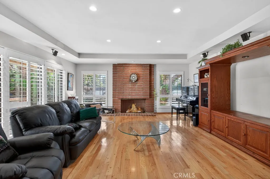 Tucked away in the coveted hills of Villa Park, this sprawling estate is loaded with opportunity and charm. Situated on a spacious and highly desired 21,000 square foot lot, this almost 4000 square foot home enjoys a single-story floor plan with functional second-level bonus room. An inviting side lit double door entry gives way to a spacious, and airy formal entry. Elegant stone floors lead to a cathedral ceiling living room complete with brick finished fireplace, soaring ceilings, dual sliders, and art nooks. The family room is finished with hard wood floors, coffered ceilings, wet bar with bar top seating, impressive brick fireplace, and oversized windows, giving this room a bright and inviting feel. Kitchen is a side loaded galley style with ample space, breakfast nook with back yard access slider, and convenient location between the family room and large dining room. Dining room is open with the living room, making it perfect for those formal functions or entertainment. The dining room also boasts elegant, coffered ceiling detail, recessed canned lighting, hardwood floors, and picture window views of the lush backyard. The primary bedroom is spacious and open with large slider for backyard access, large walk-in closet, dual vanity sinks, beauty desk, and seamless glass shower. The second level bonus room provides ample space for theatre room, office space, or additional bedroom options. It also enjoys a viewing deck, built in cabinets, and coffered ceilings. All secondary bedrooms are spacious and functional. This home enjoys tons of natural light and an open airy feel in almost every corner of the home. The backyard offers the space and serenity Villa Park is famous for. Sprawling grass, mature landscape, pool and spa, and spacious patio give the yard a warm and inviting feel. Other features include spacious curved driveway with ample parking, three car garage, corner lot location, plantation shutters, spacious laundry room with storage, and more. Please call immediately for additional details!