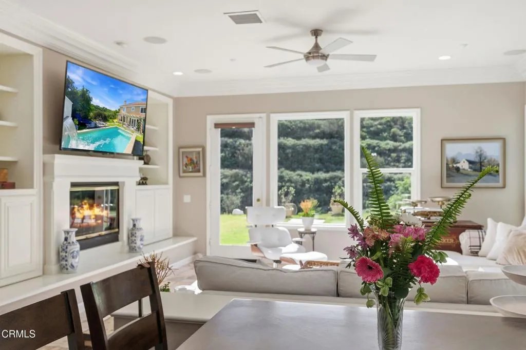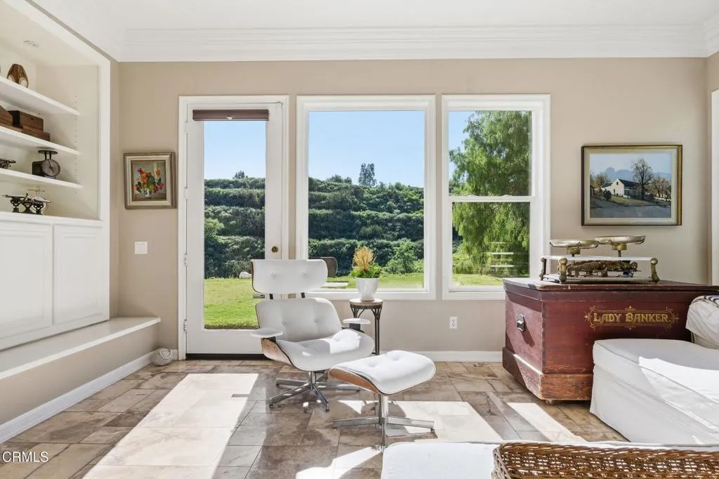 Tucked away in a private double cul de sac location, this 5 Bd/4.5 Ba home is uniquely situated on 1.1 acres in the sought after Solano Estates in the Santa Rosa Valley. Location is key as this property enjoys expansive vistas in both the front and back. Gorgeous verdant views delight the eye from every vantage point. Step into a dramatic light filled foyer & grand staircase. The formal dining room opens to a refreshing plunge pool with splashing waterfall. The open kitchen is a delight; white & bright with *stainless steel appliances *pantry *built-in microwave *6 burner cooktop *large island *Carrera Marble countertops *wine fridge *oversized stainless-steel farmers sink. The breakfast nook opens to another soothing waterfall feature & BBQ. There is an en suite bedroom downstairs. Upstairs wake up to inspiring views in the primary bedroom with sitting room *2 spacious closets *spa like bath with *dual sinks *jetted tub *vanity *private commode *separate shower. Plus 3 additional bedrooms up plus large bonus/media room currently utilized as a 6th bedroom. This estate has expansive grounds, with canyon views, avocado & fruit trees, plunge pool, waterfall features with ample room for miniature golf, orchards, or your own private park! This home is truly an oasis from the hustle bustle of daily life. New generator.