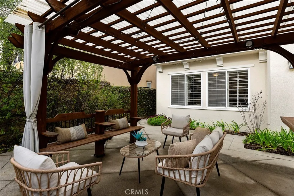 The backyard is private and thoughtfully landscaped, centered around a covered pergola that invites long lunches and unhurried evenings outdoors. An intimate extension of the home, it offers a calm and curated setting beneath the coastal sky.