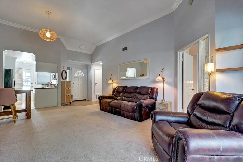 FHA Approved Complex — This stunning home has an assumable FHA loan at a low interest rate! Ideally located within the desirable Arbor Park gated community in the heart of Valencia — which offers a peaceful retreat surrounded by beautifully maintained grounds. Enjoy serene views from both the front patio deck and back balcony, perfect for your morning coffee or evening sunsets! Inside, the open layout is enhanced by high ceilings with beautiful crown molding, which create a bright and spacious atmosphere throughout. The primary suite includes a spacious bedroom, large mirrored closets providing ample storage, and a bathroom with dual vanities and luxury hardware. The central fireplace, visible from the living room, dining area, kitchen, and bedroom, adds warmth to the entire home. The charming kitchen features granite countertops, stainless steel appliances, and recessed lighting, blending modern design with everyday functionality. The refrigerator, washer, and dryer are all included—making this home truly move-in ready! Every room enjoys peaceful neighborhood views. As a part of the Arbor Park, residents enjoy exclusive access to the community pool and spa, and benefit from the peace of mind of a gated entrance and convenient guest parking. The attached single-car garage provides extra storage and easy access. This home is just minutes from Shopping and Dining including; Granary Square, Valencia Town Center Mall, top-rated schools, medical and dental services, walking and biking paseos, Summit Park, the YMCA, College of the Canyons, and California Institute of the Arts. With FHA approval and No Mello Roos taxes, this condo offers exceptional value in one of Valencia’s most sought-after neighborhoods! Don’t miss your chance—schedule your showing today!
