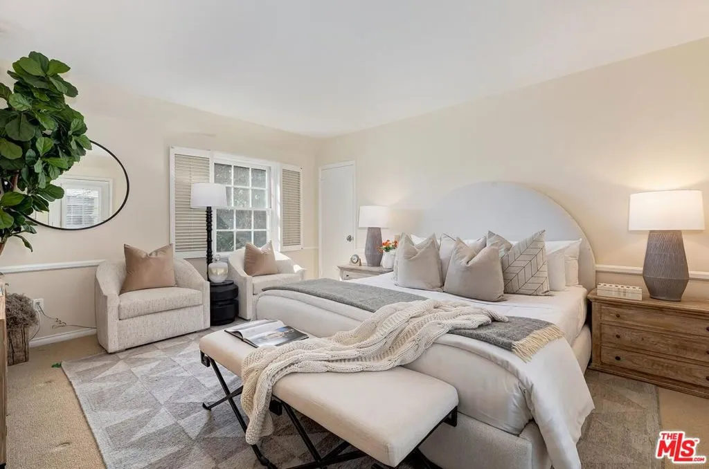 Situated on a tree-lined street in prime Westwood, this charming, single level, colonial revival is a perfect starter home, trade-down home or pied-a-terre for even the most discerning of buyers. Set on a flat corner lot, the sun streams in from every angle bathing the home in natural light. Constructed in the mid 1930's, this two bedroom plus detached guest suite house features all the best of traditional details including a high-pitched roof with gabled dormers, coved ceilings, warm hardwood floors, chair railing and wainscoting throughout. The tour of the main house starts with a tasteful formal entry leading to a large formal living room with a soaring open beamed ceiling along with a stately marble framed fireplace. Also, off the main hallway there is a gracious formal dining room with lovely wainscoting and crown molding. Adjoining the dining room is an updated, gourmet kitchen with stone counters, St. Charles cabinetry, glistening subway tile, warm porcelain flooring and newer stainless appliances beckoning to the culinary master or chef-to-be in all of us. On the other side of the house is the bedroom wing, including two spacious family bedrooms: one with an ensuite bath, and a second generous bedroom that shares a hall bath. Both bathrooms were recently updated with taste and quality. Finally, there is a third detached bedroom with bath above the garage well-appointed for welcoming the occasional guest or family member. The house wraps around a convivial rear brick patio, with covered outdoor living room and open dining area, elegantly designed for enjoying the quintessential Southern California lifestyle of al fresco entertaining or a quiet afternoon enjoying a book or glass of wine. This truly incomparable home is conveniently located mere minutes from Westwood Blvd shops and restaurants, UCLA campus, Westwood village stores, Century City offices, Tony Westfield mall and is right around the corner from the award-winning Fairburn elementary school.