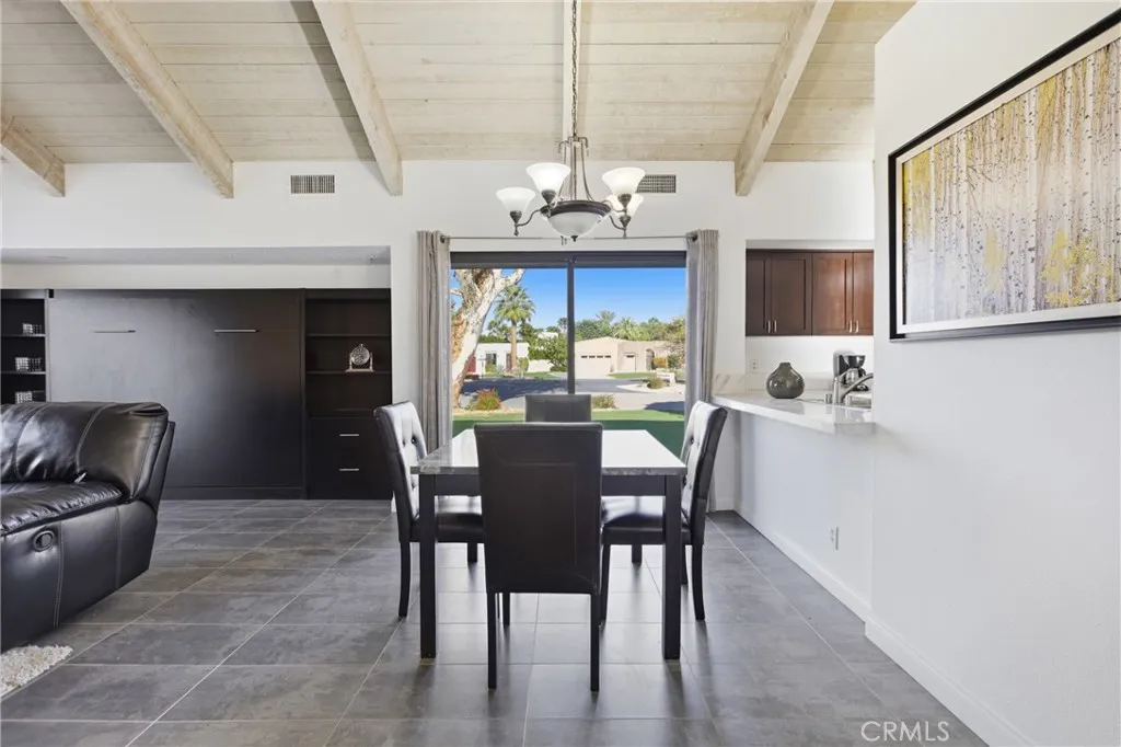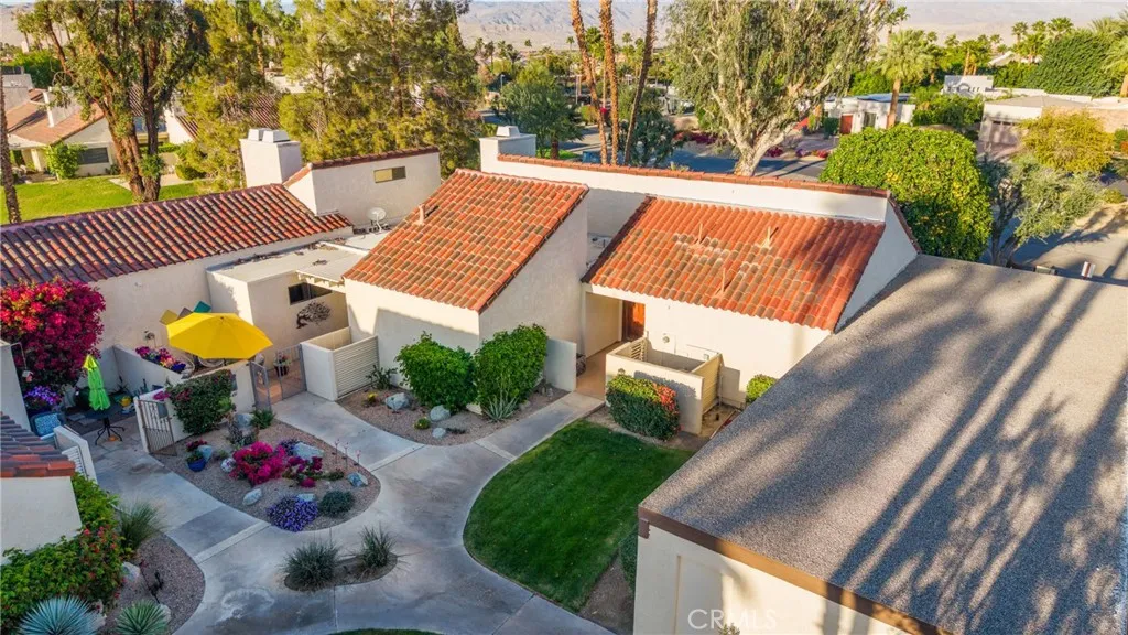 Welcome to this beautifully maintained Villa in the heart of Mission Hills Country Club, where comfort meets resort-style living. From the moment you enter the private courtyard and step through the inviting entry, you’re welcomed into a light-filled space with soaring vaulted wood-beamed ceilings and an open-concept layout that feels both spacious and cozy. The Great Room features dramatic ceilings, oversized windows, and a classic fireplace that anchors the space, while sliding glass doors invite in natural light and open to serene greenbelt views. The updated kitchen offers rich wood cabinetry, updated countertops, stainless steel appliances, and a breakfast bar that flows seamlessly into the dining area, perfect for everyday living or entertaining guests. The primary suite is generously sized with high ceilings, direct patio access, and closet doors that enhance the sense of space. The en-suite bath includes dual vanities and abundant storage, creating a comfortable and functional retreat. A well-appointed guest bath, inside laundry, and thoughtful finishes throughout complete the interior. Outside, enjoy private patio space surrounded by mature landscaping and lush grounds, ideal for morning coffee or relaxing evenings. Located near the community pool and set within the prestigious Mission Hills Country Club, residents enjoy access to world-class amenities including championship golf courses, premier tennis facilities, a full-service spa and fitness center, clubhouse dining, and 24-hour guard-gated security. Whether you’re searching for a full-time residence, seasonal escape, or low-maintenance desert retreat, this Tennis Villa offers the perfect blend of style, privacy, and an elevated lifestyle in one of the desert’s most sought-after communities.