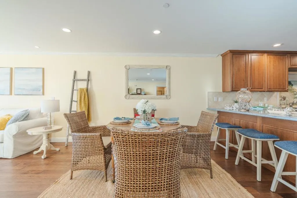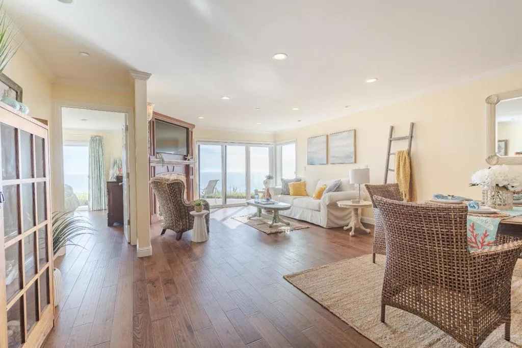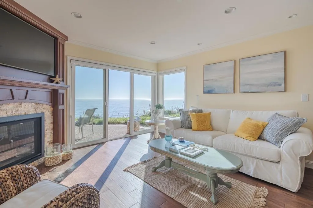 Enjoy effortless coastal access from this ground-floor, single-level oceanfront unit at Seascape Beach Resort, where unobstructed ocean views extend from the main living areas and primary bedroom - wake up to the ocean each day. This 2-bedroom, 2-bath unit features a recently remodeled, generously sized kitchen - larger than many units - along with newly updated bathrooms, fireplace, and flooring, offering a comfortable and well-appointed interior. Take in sweeping views of Monterey Bay toward Santa Cruz with year-round sunsets, just moments from direct beach access. Resort amenities include three pools, on-site dining with restaurant and bar, and reserved beach firepits with smores service, along with coastal walking paths and direct access to miles of sandy beach. Nearby are Seascape Golf Club, Seascape Sports Club for tennis and pickleball, restaurants, and Seascape Foods market, with surfing, hiking, and biking close by, and the Santa Cruz Beach Boardwalk (25 minutes) and Monterey Bay Aquarium, Carmel-by-the-Sea, and Pebble Beach (approx. 45 minutes) within easy reach.
