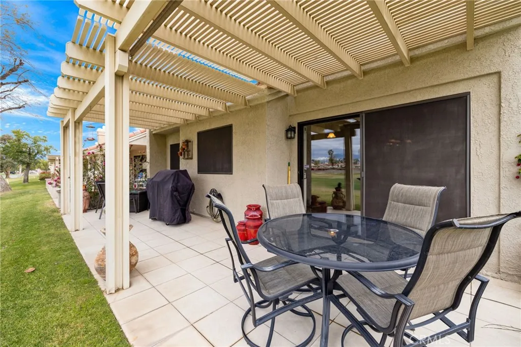 This home features the highly sought-after Augusta floor plan, thoughtfully updated to improve flow and function. The kitchen and dining area have been expanded to enhance entertaining space and capture even more of the incredible mountain views. Inside, you'll find newer appliances, upgraded A/C, and beautifully remodeled, spa-inspired bathrooms—including a luxurious primary bath with dual sinks and a walk-in shower. Offered turnkey furnished, this home is truly move-in ready. The extended patio, complete with a stylish pergola, is ideal for morning coffee or relaxing evenings with friends.