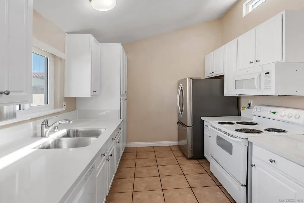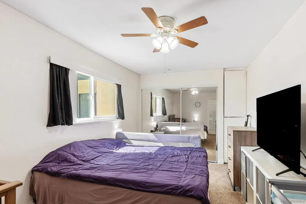 Spacious and light-filled, this second-floor condo offers serene pool and mountain views in the gated Meadowridge community. Freshly painted with re-textured ceilings and new dual-pane windows, the home feels bright and refreshed. The updated kitchen features quartz countertops, white cabinetry with brushed nickel hardware, a new dishwasher, and a stainless steel refrigerator, while the remodeled bathroom adds a modern touch. Enjoy your private balcony with exterior storage. Amenities include the community pool, spa, BBQ area, laundry room and two assigned parking spaces.