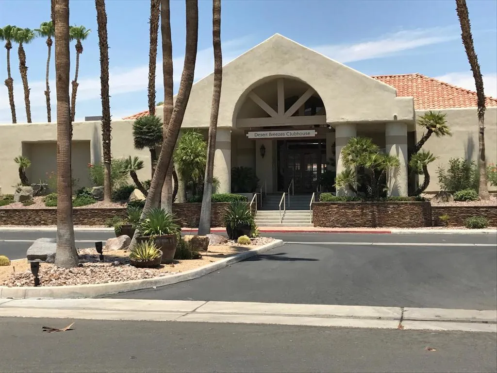 Located across from the world renown Indian Wells Tennis Gardens, this is resort living in the heart of the desert. This 3 bedroom/2 bath 1536 s.f. detached home with private yard is located in a quiet area of gated Desert Breezes. Kitchen has granite countertops and darkly finished wood cabinets. There is an area in the kitchen for casual dining. Additionally, there is a separate formal dining room as well. The primary suite is a private retreat with dual closets, double sinks and shower and commode area. This bedroom also hosts a small patio area for sipping on your morning coffee or enjoying the sun. There are 2 other bedrooms ... one of which would make a nice office or den. There is a hallway bathroom with tub/shower enclosure. Washer and dryer are located in the garage.Brand new a/c was just installed.Desert Breezes is a very desirable community with 6 pools and 5 spas, tennis/pickleball courts and a clubhouse with a gym. The monthly HOA dues of $435 covers trash, common areas. Every few years the homes are painted so that all our uniform in color in the community. Desert Breezes is close to all amenities-- shopping, dining, schools and churches. Don't miss out on visiting this home!