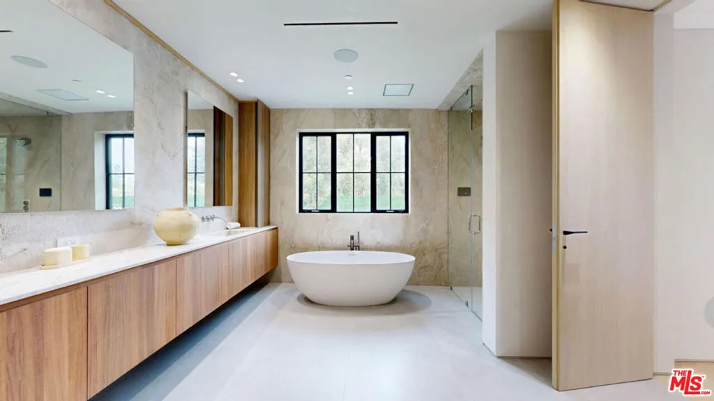 Tucked at the end of one of Brentwood's most coveted cul-de-sacs, this newly constructed estate defines privacy and prestige. Gated, secure, and set on an expansive nearly 12,000-square-foot flat lot, the property offers rare scale and seclusion in the very heart of the Westside. With 7 bedrooms and 10 bathrooms across more than 10,200 square feet of living space including 6 bedrooms in the main residence and a private 1-bedroom guest house this home is more than a residence; it is a private compound built for those who expect the best. Crafted by GME Development, every finish, surface, and detail has been executed with precision and elegance. Venetian plaster walls, imported Italian stone, and designer collections from Milan's most respected houses elevate the interiors to a standard rarely found. Soaring ceilings, dramatic volumes, and walls of Fleetwood glass create seamless flow to the outdoors. The backyard is nothing short of extraordinaryan immense, flat, resort-style retreat that rivals any in Brentwood. Mature landscaping frames a 40-foot pool and spa, heated covered terrace, full outdoor kitchen, and expansive lawns that make this one of the most desirable outdoor settings in the city. It is a true sanctuary, designed for both grand entertaining and quiet moments of escape. Inside, the estate offers seven bedroom suites, including a primary wing with nearly 14-foot vaulted ceilings, dual walk-ins, private fireplace lounge, and spa-inspired bath. A Molteni-designed kitchen with Wolf, Sub-Zero, and Miele appliances anchors the main floor, supported by a hidden chef's kitchen and walk-in pantry. On the lower level, a 5K theater, full gym, spa/massage room, wine cellar, and lounge extend the lifestyle experience, with natural light flooding the space through a rare full-length light well. A detached 800-square-foot ADU with its own address provides ultimate flexibility for guests, staff, or office use. With six HVAC zones, elevator access to all levels, and a gated motor court, the property is designed for effortless living at every turn. Located moments from Brentwood's top dining, shopping, and leisure amenities, this estate is a statement of design and lifestylean unmatched combination of scale, privacy, and luxury on one of the neighborhood's finest lots.