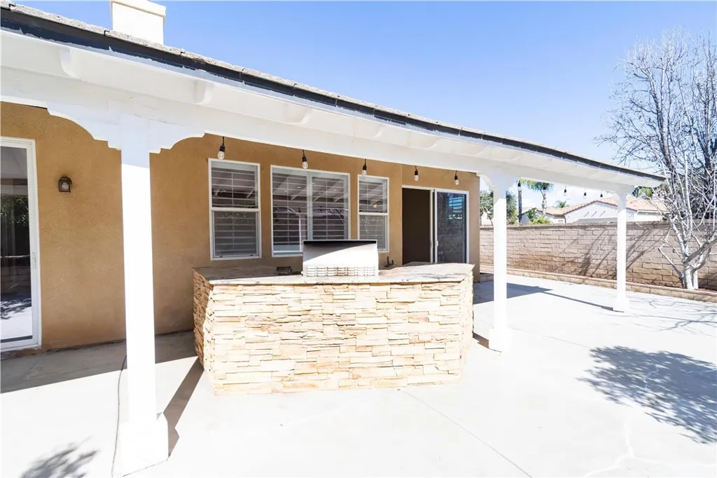 Experience the ease and comfort of single-story living in this beautifully maintained corner-lot home located in the highly regarded Temecula Valley Unified School District. With its open layout, soaring 10-foot ceilings, and abundant natural light, this residence offers a welcoming atmosphere designed for both everyday living and effortless entertaining. From the moment you arrive, the mature olive tree and clean, low-maintenance landscaping create inviting curb appeal. Inside, custom large-format tile flooring runs throughout the home, no carpet, paired with neutral tones and plantation shutters for a timeless, cohesive look. The thoughtfully designed floor plan maximizes every square foot, offering comfortable flow with no wasted space. At the heart of the home is a spacious open-concept kitchen and great room. The chef’s kitchen features a massive center island with seating for six or more, generous counter space, and seamless connection to the dining and living areas, ideal for gatherings both large and small. A cozy fireplace anchors the great room, while pre-wiring for surround sound enhances your entertainment experience. An office nook with built-in desk and cabinetry provides a functional work-from-home or study space. Step outside through one of two sliding glass doors (from the dining area and the primary bedroom) to enjoy the private backyard retreat. A full-length covered patio, built-in BBQ, fruit trees, and block fencing (on two sides) create a setting suited for outdoor dining and relaxation year-round. The low-maintenance yard allows more time to enjoy and less time on upkeep. The private primary suite offers direct backyard access and a spacious en-suite bath complete with soaking tub, dual sinks, and a large walk-in closet. Two additional bedrooms and a full bath provide flexibility for family, guests, or additional workspace.Built in 2004, this 1,853 sq ft home sits on an approximately 6,534 sq ft lot and includes a 2-car attached garage (approx. 432 sq ft). Additional highlights include ample parking, corner lot location, and availability for immediate occupancy. Microwave will be replaced prior to close of escrow. Low taxes and no HOA add to the appeal of this Winchester property.