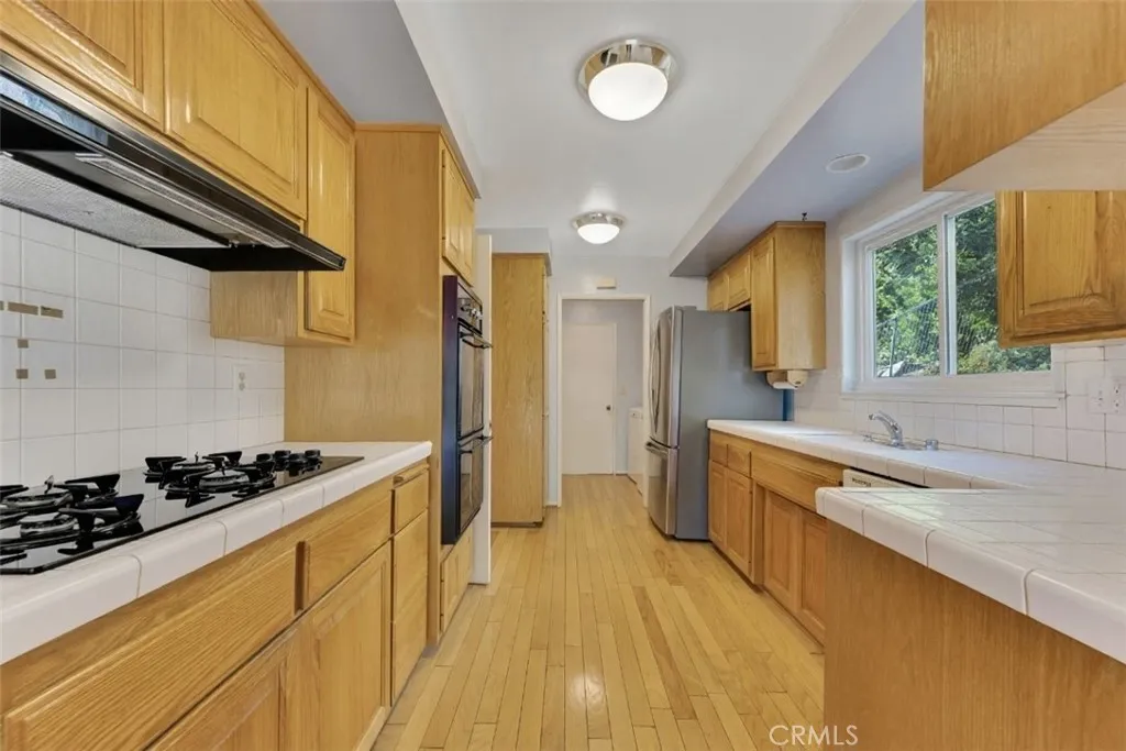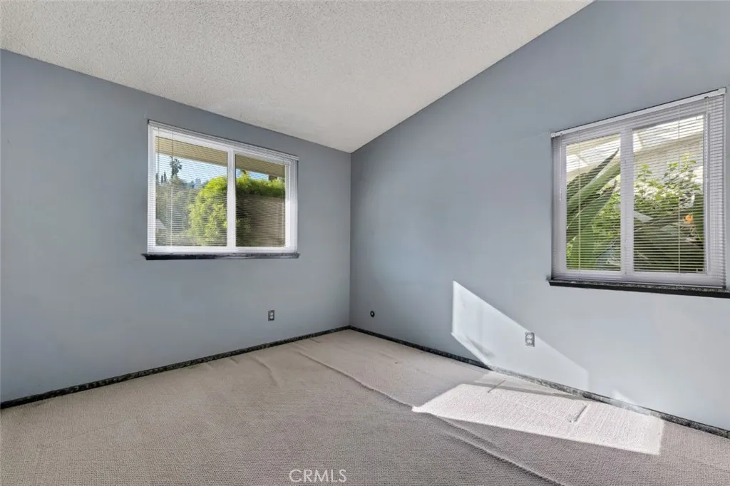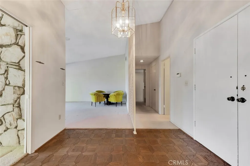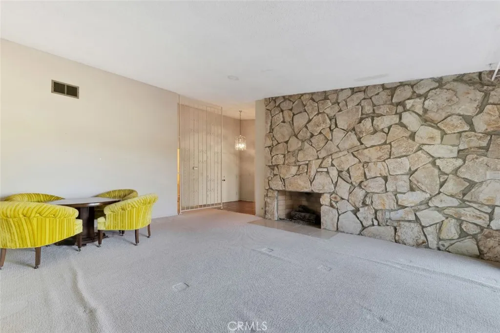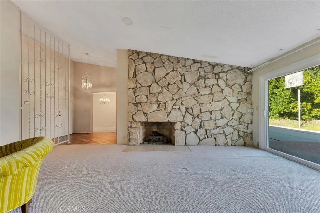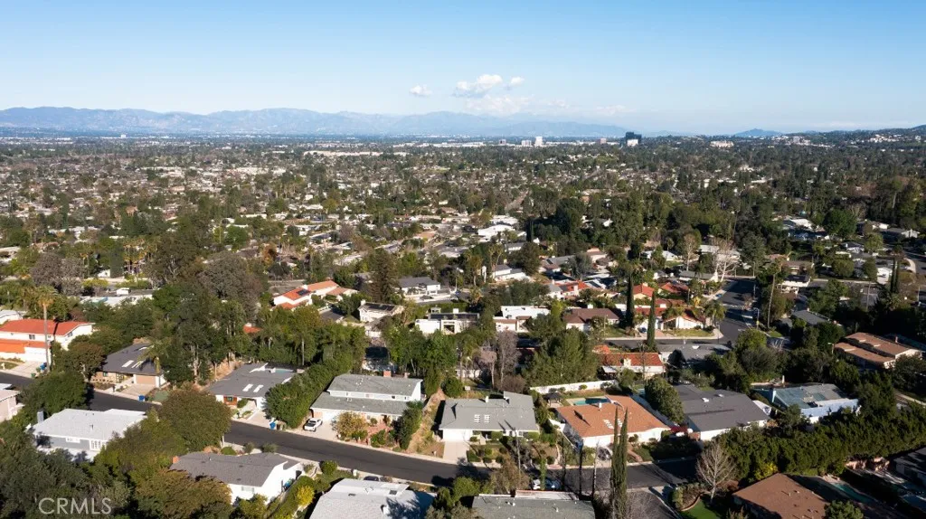 Offered for the first time since it was built in 1966 and lovingly maintained by the original owner. Designed by renowned architect Charles DuBois, this spacious mid-century residence is nestled within a picturesque hillside community of Woodland Hills and is located within the boundaries of highly rated and award-winning schools including Lockhurst Dr. Elementary, Hale Charter Academy, and El Camino Real High School. With 4 bedrooms, 2.5 bathrooms, and 2,445 square feet of living space on a generous lot of just over 11,000 square feet, the home offers attractive curb appeal and a thoughtfully designed floorplan showcasing preserved classic mid-century elements and timeless architectural character. A double door entry opens to a welcoming foyer that flows into the formal living room and adjacent family room, both highlighted by cathedral ceilings, sliding glass doors to the backyard, and an impressive floor-to-ceiling, wall-to-wall natural stone fireplace. The kitchen features a breakfast nook with its own sliding glass door to the yard, a built-in gas range, wall oven, and a dedicated laundry room with direct access to the two-car attached garage, which also provides access to the north side yard. A formal dining room sits just off the kitchen and connects seamlessly back to the foyer, while a centrally located powder bath adds convenience for guests. All four bedrooms are situated along a private hall, each generously sized. The three secondary bedrooms share a full hall bath with dual sink vanity, while the primary suite offers cathedral ceilings, a fourth sliding glass door to the backyard, a walk-in closet plus an additional closet. A dedicated vanity area leads to the en-suite bath complete with dual sinks, separate tub and shower, and direct access to the south side yard. The expansive backyard showcases hillside views with mature fruit trees and offers incredible potential to create custom hardscape seating areas, possibly a pool, as well as a generous lawn space for recreation or entertaining. Move-in-ready with great bones, abundant natural light, and expansive living spaces, this home presents an outstanding opportunity to update and customize while enjoying close proximity to shopping and dining along Ventura Boulevard, premier retail and entertainment at Westfield Topanga and The Village at Westfield Topanga, scenic hiking trails in Topanga State Park, and convenient access to the 101 for an easy commute.