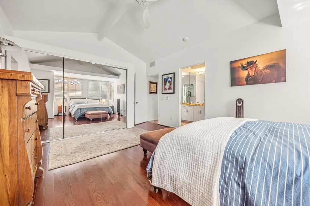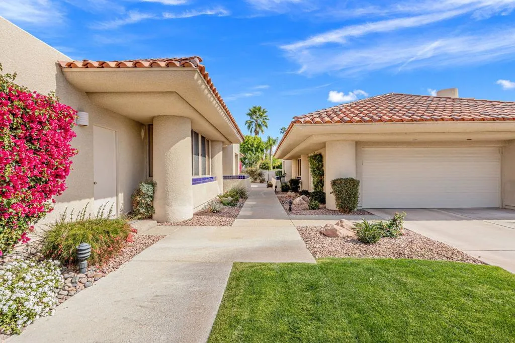 Set on one of the most desirable locations in the community, this residence boasts one of the largest back patio in the complex and a refined desert lifestyle with golf course views. Once the home of Academy Award-winning actress Jane Wyman--the first wife of President Ronald Reagan--this property was chosen for its peaceful setting away from street noise, offering a sense of privacy and retreat that's hard to find.Highly sophisticated and beautifully upgraded, this 3-bedroom (one currently used as a den), 2.5-bath + loft condominium showcases designer finishes throughout. The completely remodeled kitchen is both stylish and functional, while the main living area features vaulted ceilings, a statement fireplace, a wet bar, and a dramatic wall of windows that floods the space with natural light. High-end shades provide privacy and sun protection when desired.A standout feature is the chic loft addition above the kitchen--enhanced by a solar tube for gorgeous natural light--widely considered one of the finest loft designs in Rancho Mirage Country Club to date.The luxurious primary suite offers its own cozy fireplace, creating a true sanctuary, along with an exceptionally updated bath featuring a beautifully redesigned walk-in shower. Additional highlights include 24 owned solar panels for energy efficiency and long-term value.Step outside to an expansive, private outdoor living space complete with a pool and spa, perfectly positioned to overlook the golf course and nearby tennis/pickleball courts--ideal for entertaining or quiet evenings under the desert sky. Perfect as a full-time residence or a sophisticated seasonal escape, this home delivers comfort, style, and the very best of the desert lifestyle.