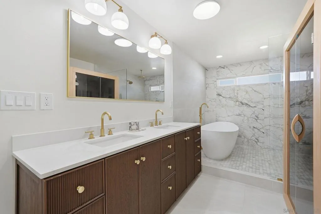 Welcome to 82 2nd Avenue, a fully remodeled, one-of-a-kind home in West Chula Vista with a true custom feel. The property features a wrap around driveway waiting for you to give it the dream entrance you’ve always wanted. The property has entrance from both sides directly into the backyard. The house has an over sized detached two car garage with extra storage room. Upon entry, you are greeted with a foyer that opens into a massive open area combining the living, dining, and separate sitting area. A 16-foot bi-fold door connects the home to the backyard ready for your hosting and indoor outdoor enjoyment. The home offers 5 bedrooms and 4 full bathrooms, including 3 en-suite bedrooms with private bathrooms, ideal for multigenerational and in law living. The primary bedroom includes a spa-like bathroom with a wet room including a Roman tub, rainfall shower, sauna, and private toilet room. Close to your living area is a true custom kitchen features walnut cabinetry, a 48-inch range, 60-inch refrigerator, 12-foot island, and a bonus vegetable sink. Seller has plans in process with architect and engineer for two ADUs, each 2 bed 1 bath 599 square feet.