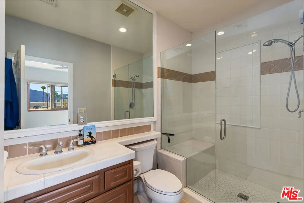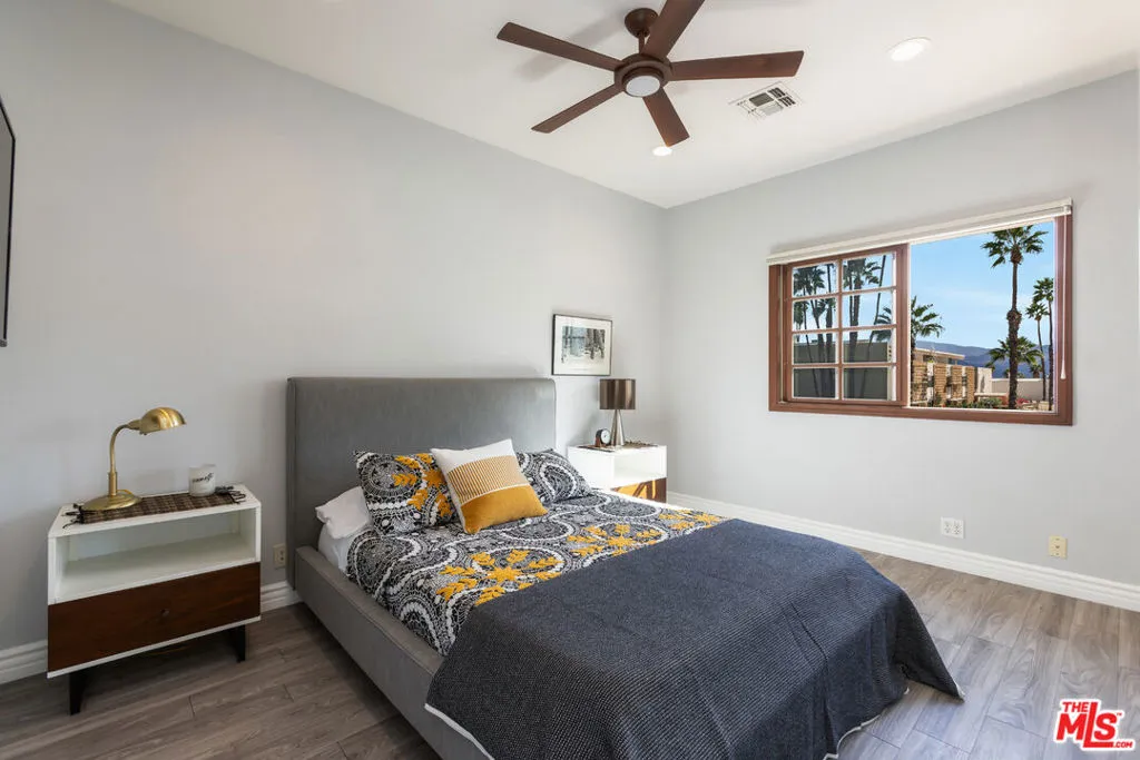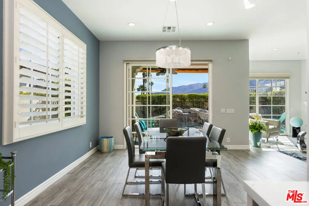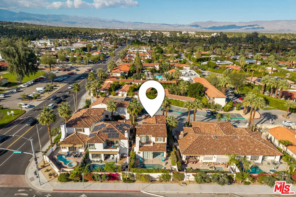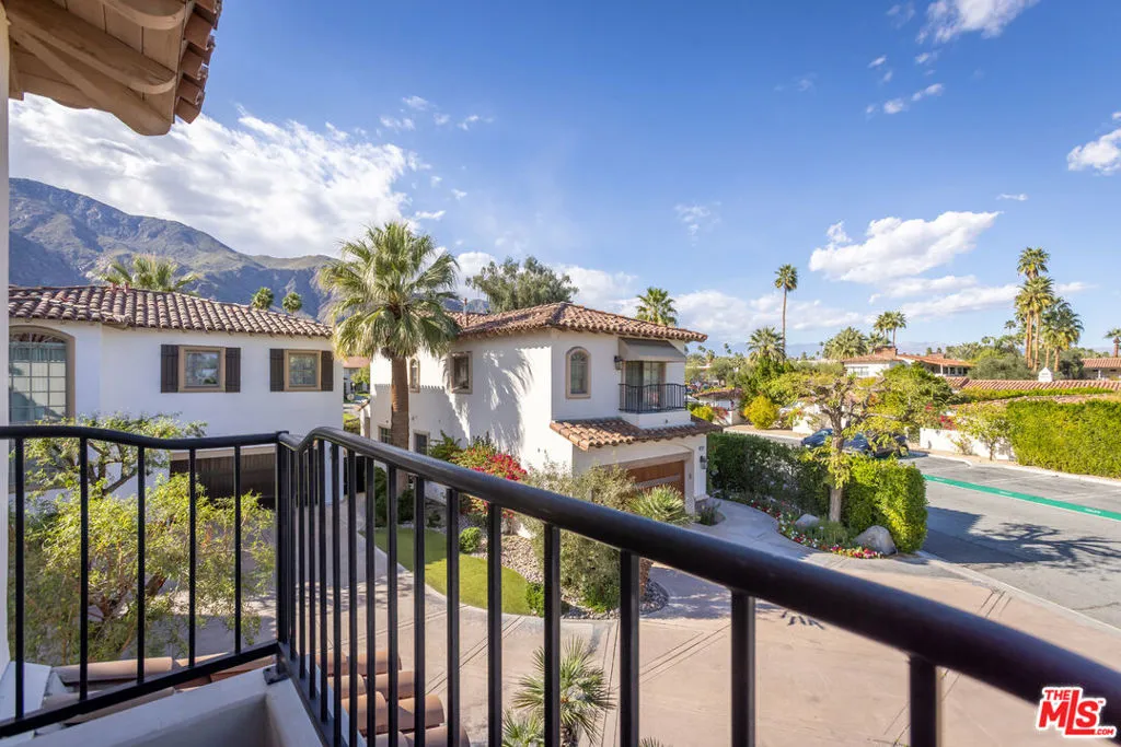 Whether you are headed to the festivals or looking for an extended Palm Springs retreat, now is your time to take advantage of recently reduced seasonal pricing on this gem located in the heart of Downtown Palm Springs in the illustrious Movie Colony neighborhood. This 2-bedroom, 2.5 bath condo features an immaculate floor plan, distinct Spanish accents and architecture, impeccable desert views and flexible positioning as a place either for getting work done peacefully, or venturing into town on a spontaneous adventure after entertaining guests at sunset. An alternative to Uber, living at the doorstep of all that Downtown has to offer! The downstairs is spacious and optimized for an indoor/outdoor flow. The perfect amount of blue accents, quartz, stainless steel and stone throughout the living, dining, kitchen and outdoor areas create a cohesive oasis vibe. Large floor to ceiling windows showcase the sparkling waterfall pool and entertainment area outside, which sits nestled amongst a desert backdrop of palm trees, mid century modern architecture and the San Jacinto Mountains. Upstairs features a second living room area that can easily be utilized as a reading nook or game room, and more stunning mountain views with a large balcony for enjoying mornings and evenings. A large bedroom with ample storage space and an en-suite bathroom also features views of the mountains, while the velvety primary suite boasts an impressive walk-in closet, a soaking tub perfect for a relaxing desert night and a romantic Spanish balcony that overlooks the Palm Trees of the Movie Colony neighborhood. A sturdy 2-car garage features epoxy floors and ample storage space. Call for pets. Long term renters preferred, open to short term leases. Open to short-term rentals of between 30 days and six months as well.